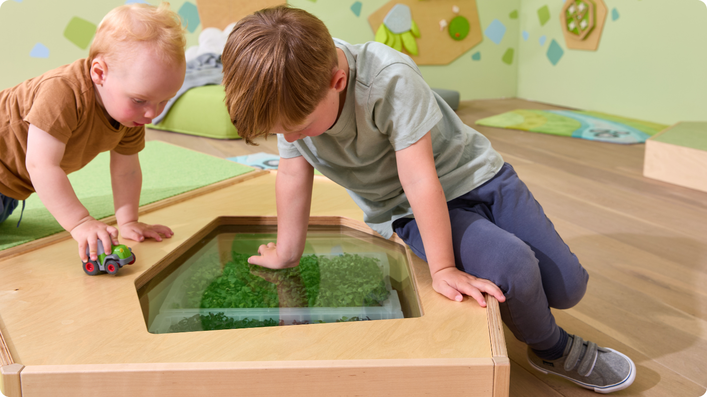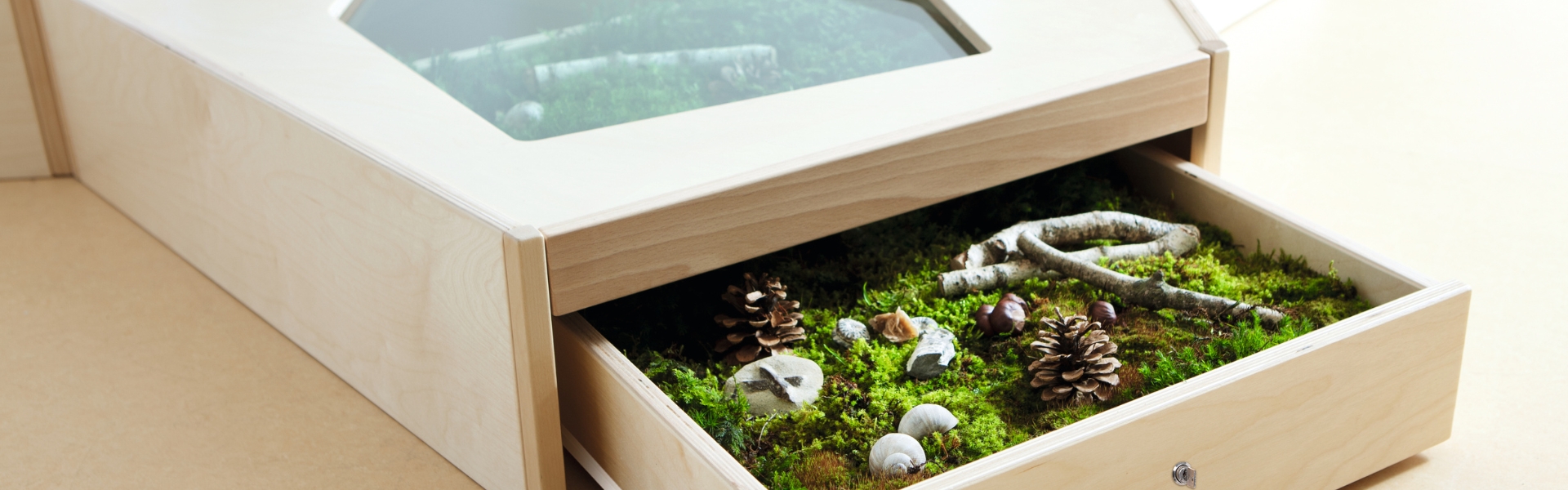Doordacht in elk detail en veelzijdig te gebruiken! Maak kennis met ons vitrinepodium! Dankzij de vele gebruiksmogelijkheden kun jw samen met kinderen tal van spannende projectideeën realiseren. Het vitrinepodium is een meubelstuk dat uw kinderopvangruimtes verandert, het middelpunt wordt van bijzondere projecten en zo al bij baby’s en peuters participatie en betrokkenheid mogelijk maakt. Laten we samen de nieuwsgierigheid van kinderen prikkelen door producten zoals het vitrinepodium steeds opnieuw op een andere manier te bedenken en in te zetten: