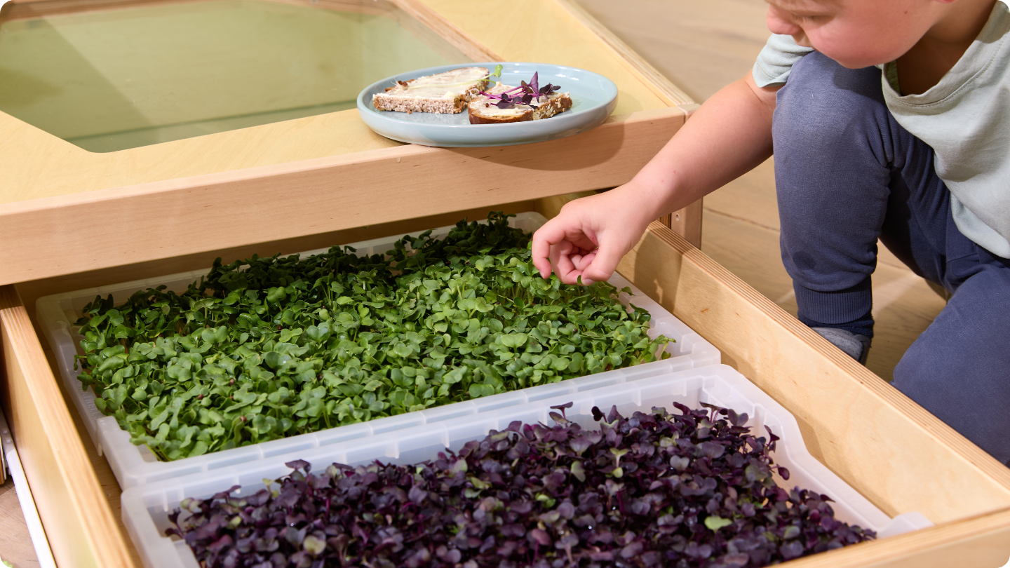 4. Dan komt het grote moment: jij opent de lade en de tuinkers wordt geoogst – zeker weten een onvergetelijk weekproject voor de kinderen in jouw kinderopvang!