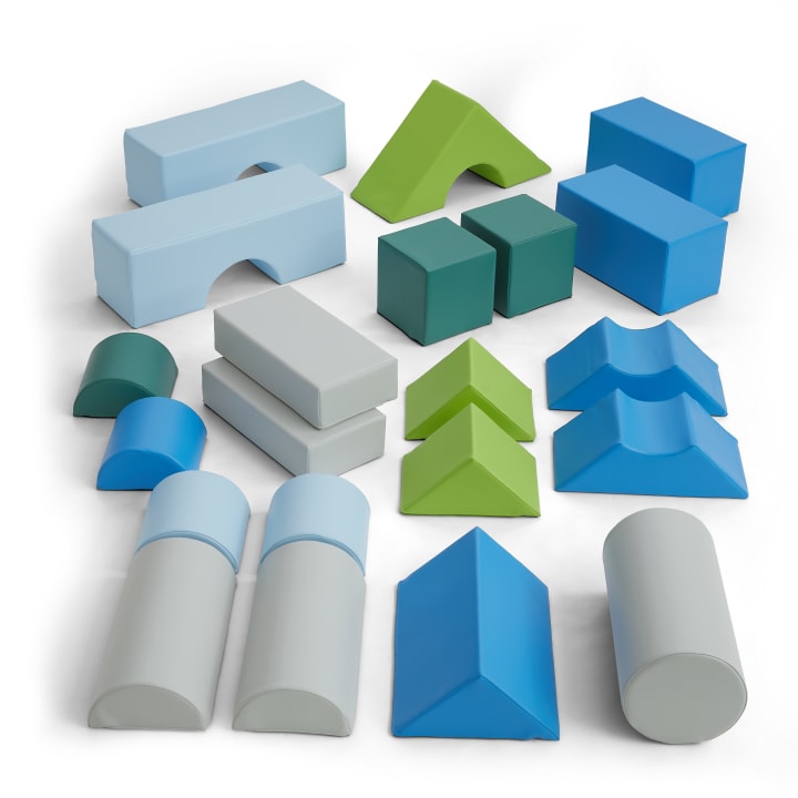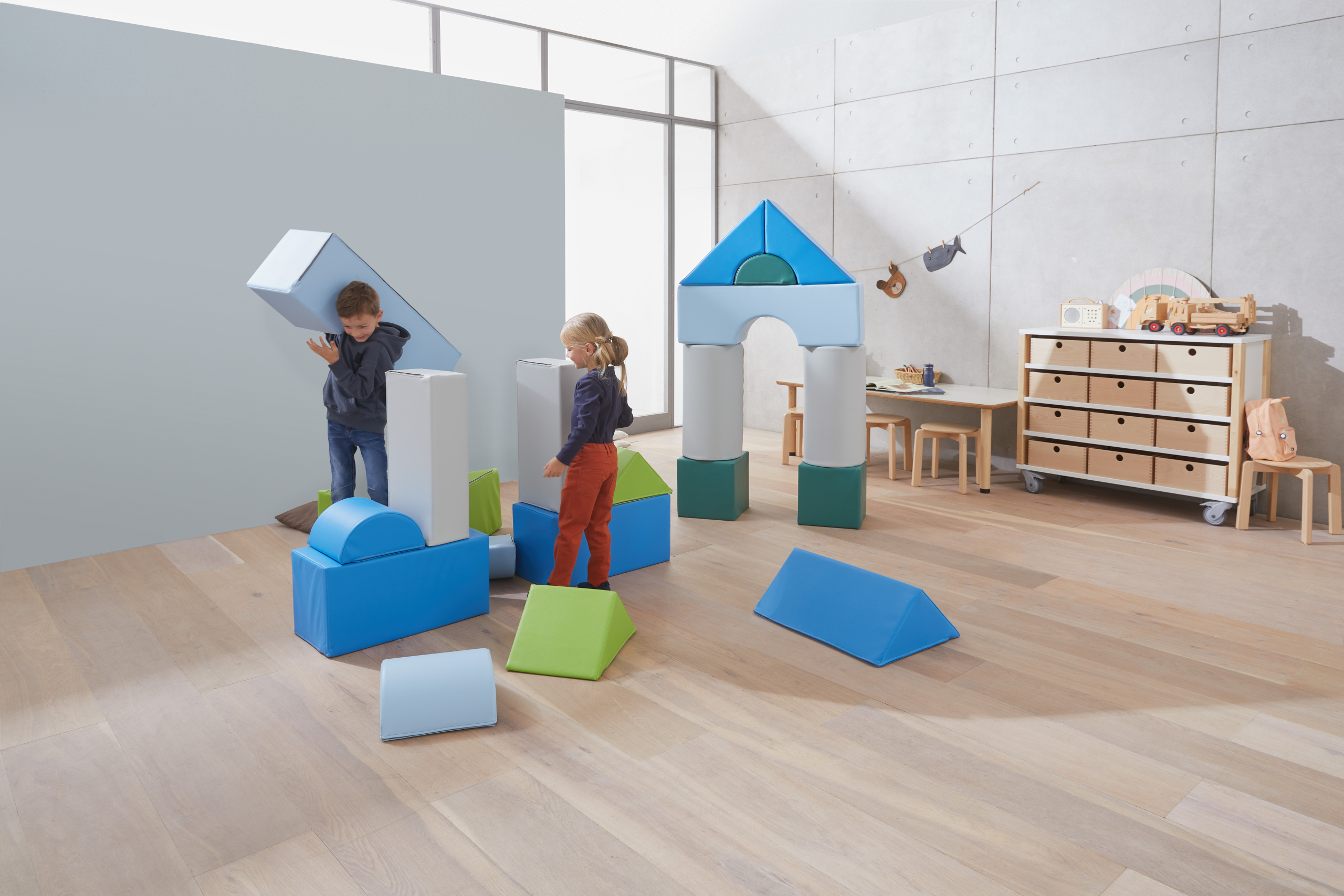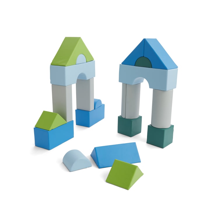 Deze bouwstenen zijn enorm, maar toch erg licht. In een handomdraai creëer je huizen, poorten, etc. voor een klein stadje of gewoon verschillende obstakels die je kunt overwinnen door te klimmen of springen. Als er tijdens het bouwen of spelen iets instort, is dat geen probleem, want de bouwstenen zijn superzacht. De robuuste kunstleren bekleding kan moeiteloos worden gereinigd.