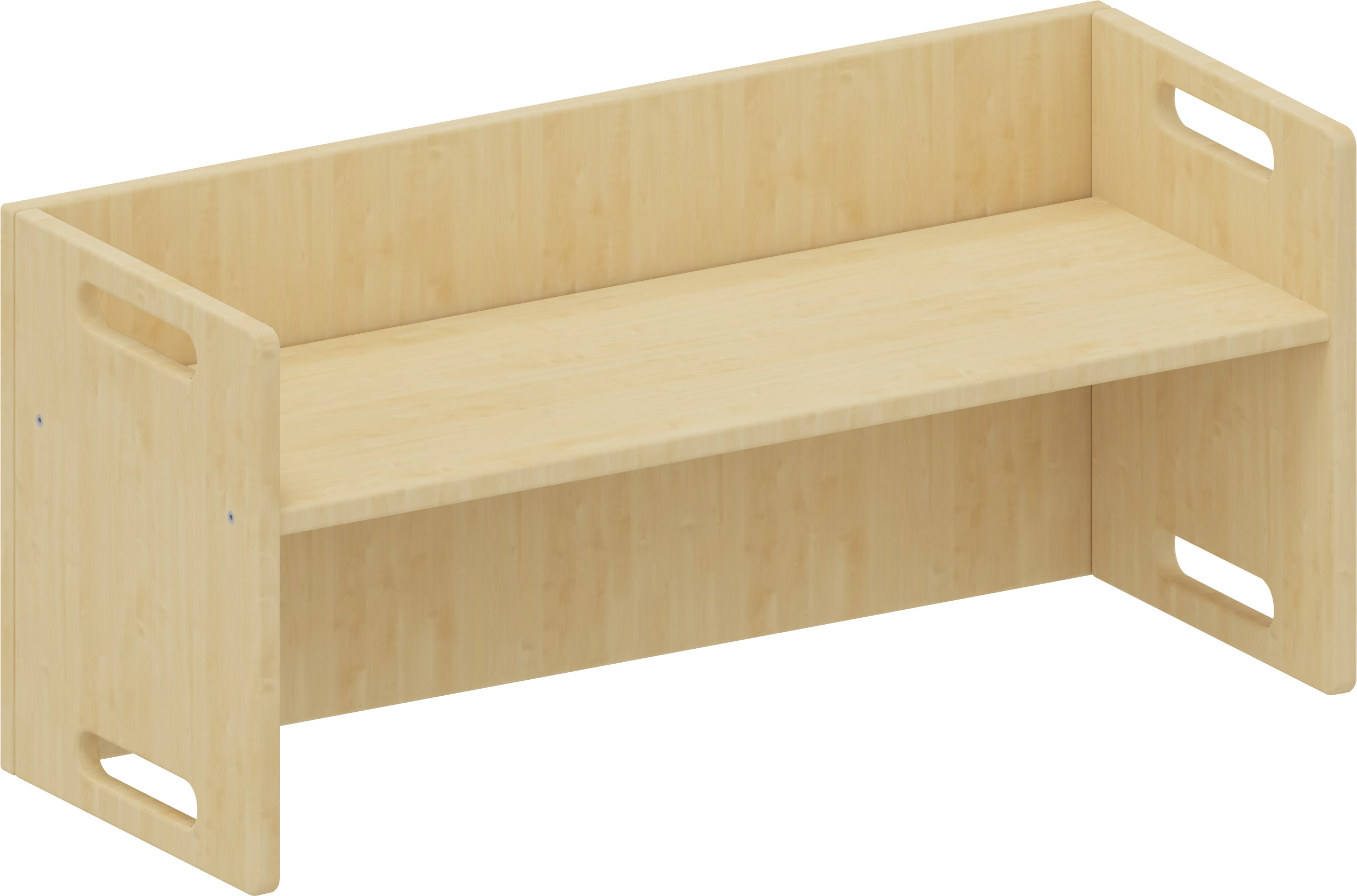 Drie verschillende zithoogtes. Soms met armleuningen, soms zonder... De handgreepgleuven vergemakkelijken het hanteren. Stapelbaar! Zithoogtes: 12, 21 en 26 cm