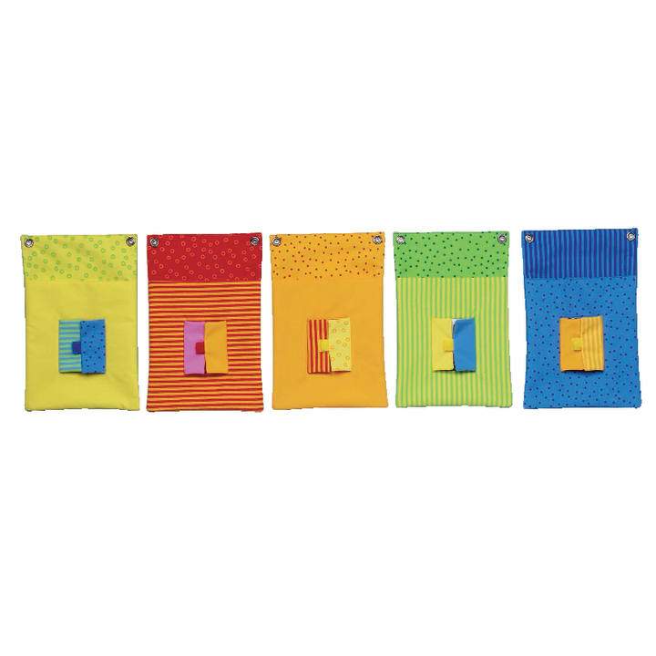 In deze zakken worden informatiebladen, gevonden voorwerpen of favoriete spullen van de kinderen overzichtelijk bewaard. Een foto of afbeelding in het venster onthult van wie de tas is. 's Ochtends kunnen de kinderen de "luiken" openen en aan anderen laten zien: Ik ben vandaag aanwezig.