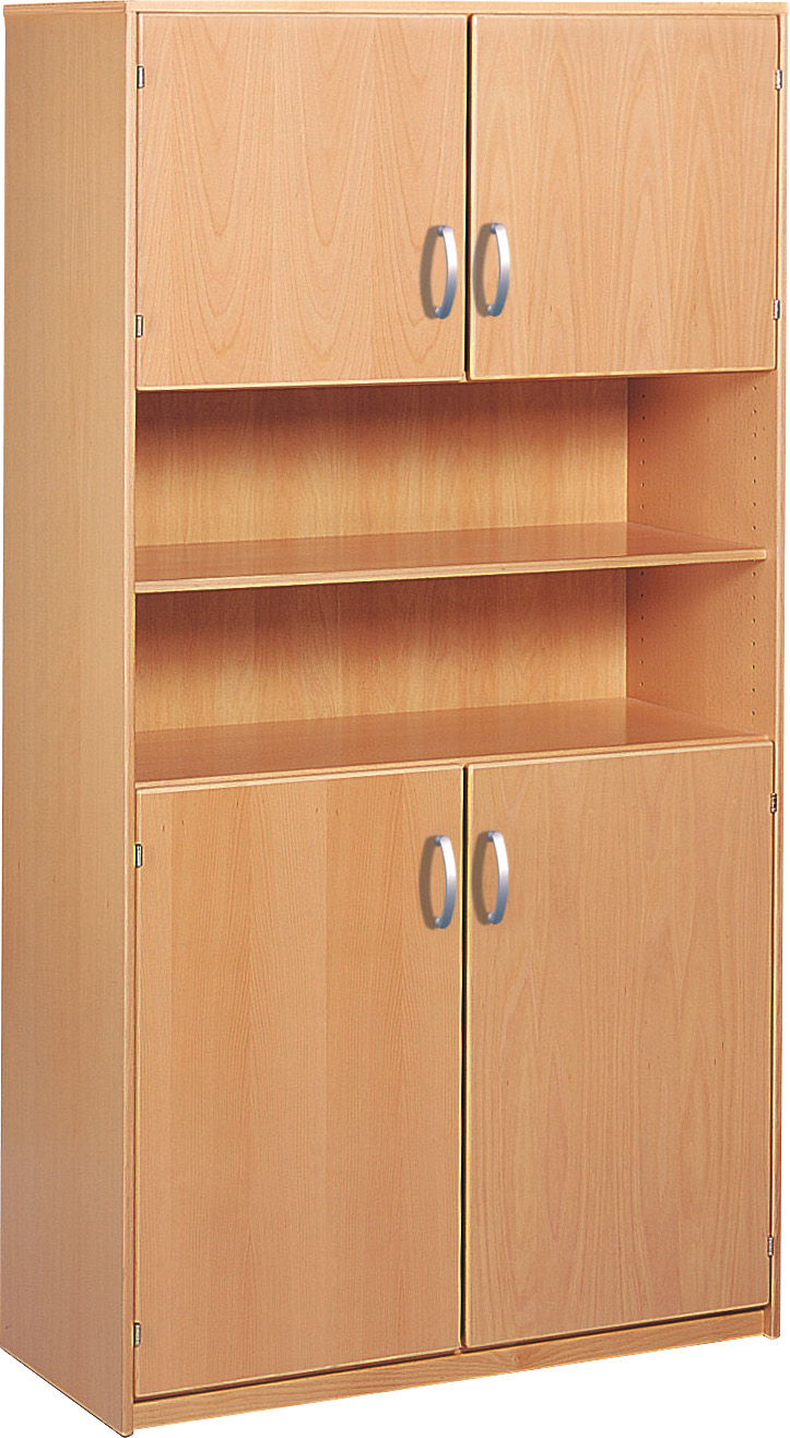 De hoge kast biedt veel opbergruimte voor speelgoed, boeken of mappen. In de kast bevinden zich 2 vaste planken en 3 inlegplanken. De inlegplanken kunnen naar wens in de kast worden geplaatst om de grootte van de compartimenten aan te passen. De metalen plankdragers waarmee de inlegplanken aan de kast worden bevestigd, voorkomen dat de planken eruit worden getrokken. Stops boven en onder zorgen voor geruisloos sluiten van de deuren. Om te voorkomen dat de kast kantelt, moet deze aan de muur worden bevestigd. De hoge kast is gemaakt van echt beukenfineer en daardoor zeer stevig. De natuurlijke uitstraling zorgt voor een warme en huiselijke sfeer waarin kinderen zich op hun gemak voelen. De deuren zijn verkrijgbaar in naturel kleur of in verschillende tinten. Ook de handgrepen kunnen naar wens worden gekozen om de kast aan te passen aan je interieur.