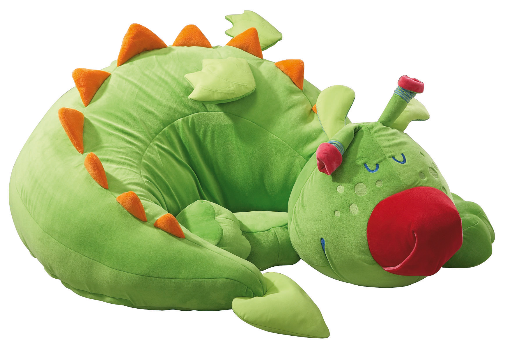De zittende draak Fridolin van HABA is een heel bijzonder kereltje! Kleine avonturiers kunnen op zijn zachte rug knuffelen, dromen en ontspannen. Met een lengte en breedte van meer dan een meter biedt Fridolin voldoende ruimte voor creatieve rollenspellen en dagdroomreizen: hier kunnen kinderen heroïsche verhalen lezen, naar spannende hoorspelen luisteren of gewoon rondhangen en hun ziel laten bungelen.