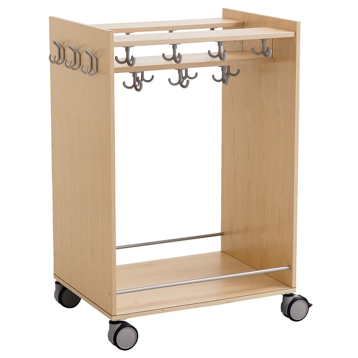 Met 15 driedubbele haken, 6 veiligheids-dubbele haken en 4 wielen, waarvan er 2 vergrendelbaar zijn. De twee stalen buizen zorgen ervoor dat tassen en rugzakken niet uitvallen.