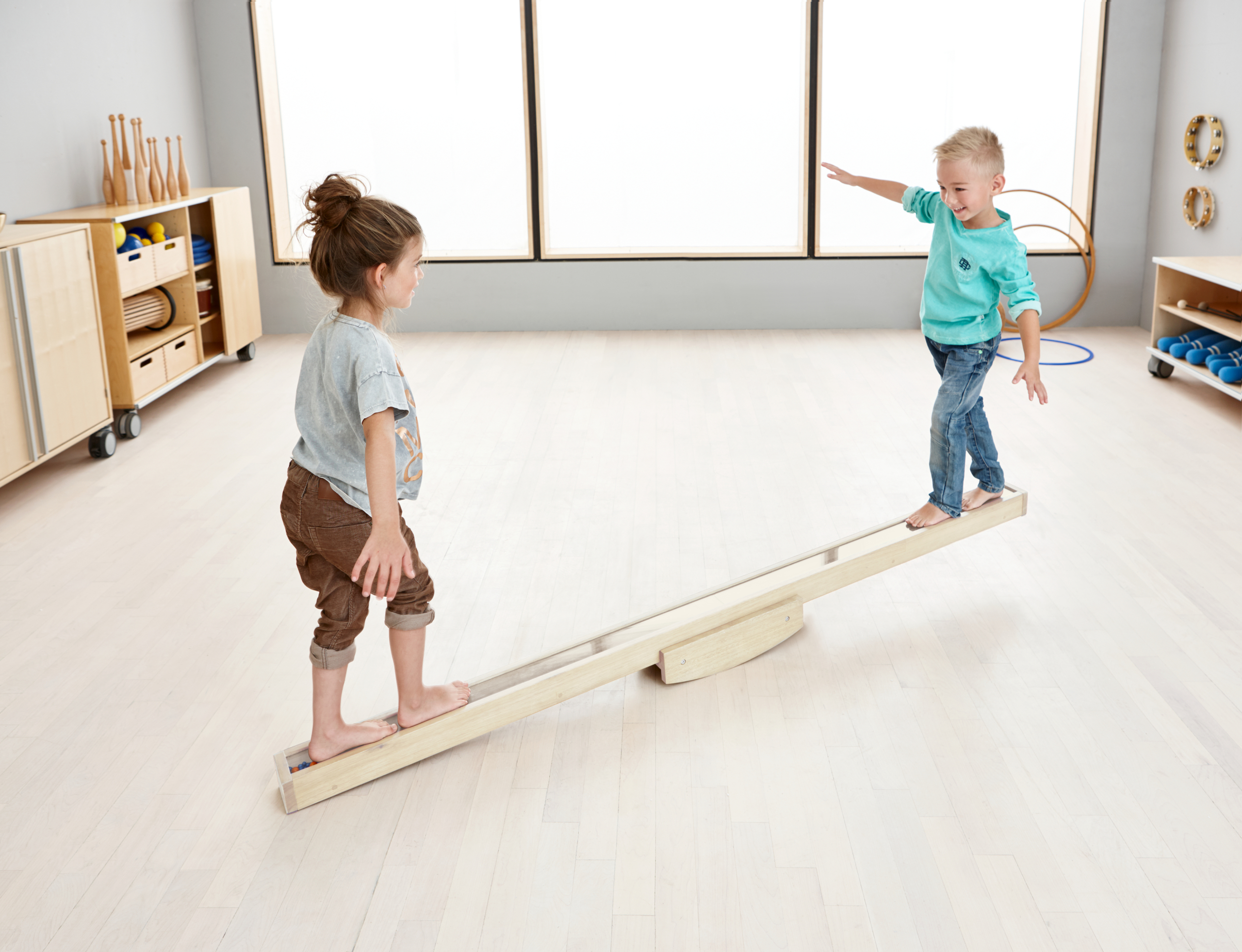 Door slimme gewichtsverplaatsing kan men de balk alleen of met z’n tweeën laten schommelen of het evenwicht op de balk behouden. De klankwip is perfect te integreren in een bewegingsparcours. Materiaal: Echt hout, licht gefineerd multiplex. Afmetingen: L 204 x B 19,6 x H 15 cm. Veiligheidszone: L 510 x B 320 cm. Maximale belasting: 80 kg. Leeftijd: vanaf 3 jaar.