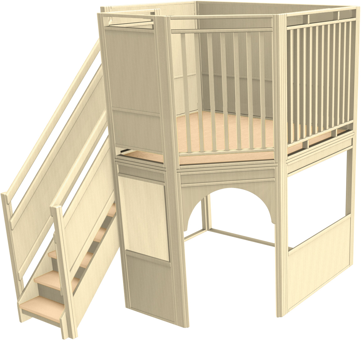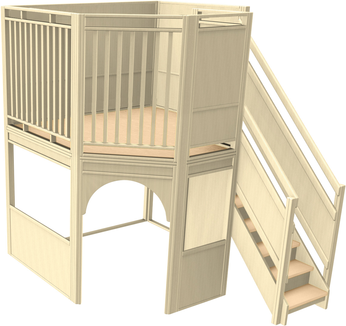 Belangrijke veiligheidswaarschuwing: Vereiste kamerhoogte groter dan 272 cm! Belemmering van het hoofd voorkomen! - De afstand tussen de bovenkant van het speelhuisje naar het plafond moet ofwel minder dan 8,9 cm zijn of groter dan 23 cm.