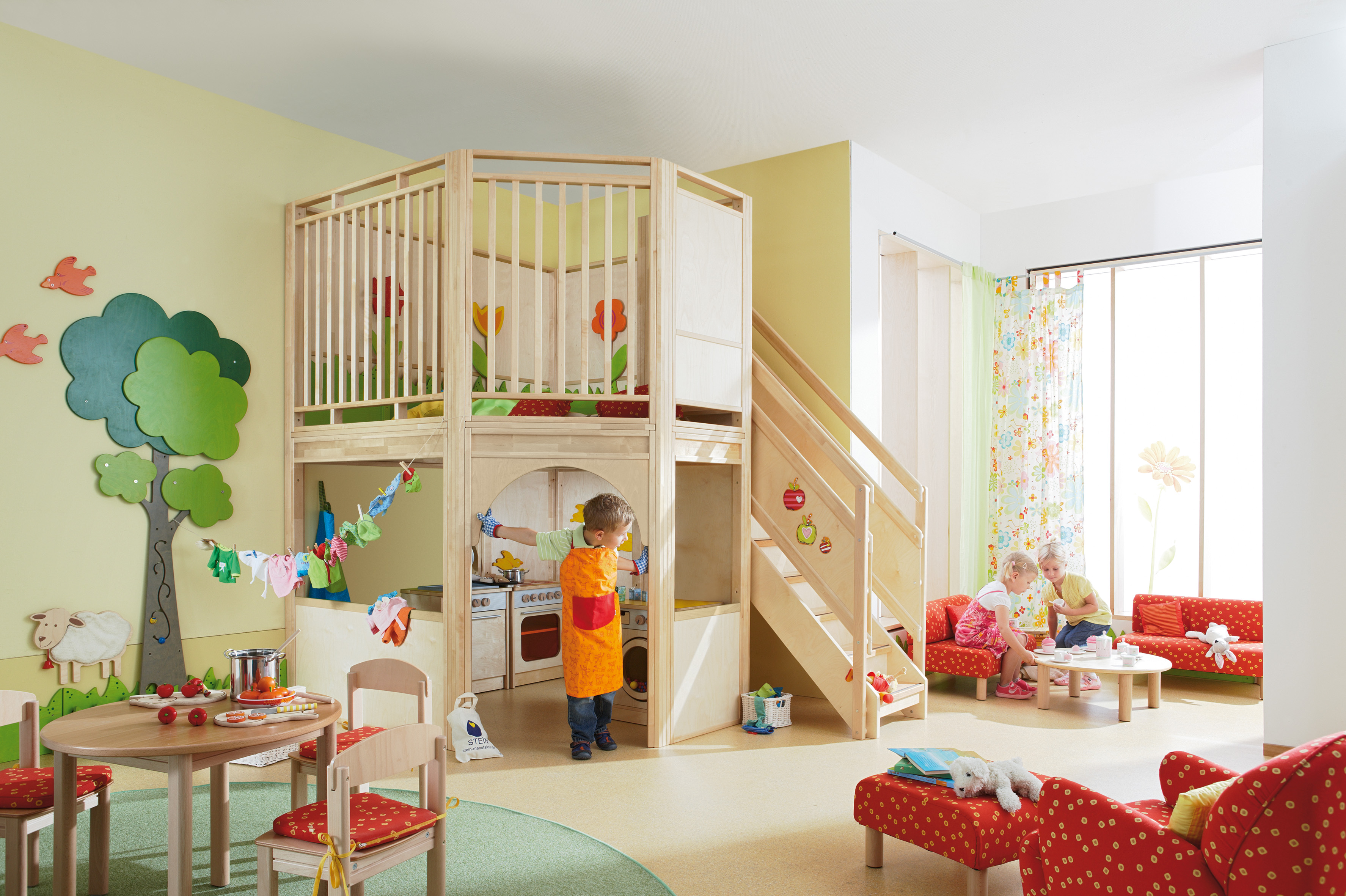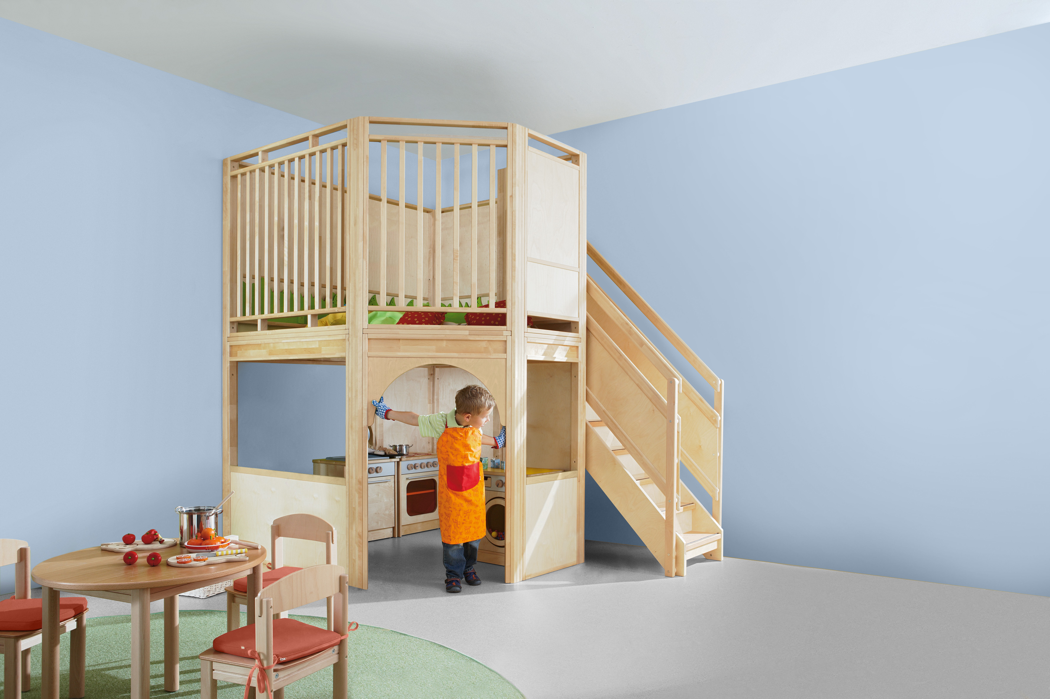Het huis met dakterras biedt speelplezier op twee niveaus. Op de "begane grond" is er genoeg ruimte om een geweldig gebied voor rollenspellen te creëren. Wat komt hier? Een kleine keuken, een knusse hoek of toch een ontdekkingsgebied? De mogelijkheden zijn talrijk en er zijn geen grenzen aan het plezier van de kinderen. Een bijzonder hoogtepunt is het dakterras: het kan worden uitgerust met diverse applicaties om te spelen, onderzoeken en ontdekken. Zo kunnen kinderen genieten van gevarieerd speelplezier. Aan speelhuizen worden verschillende eisen gesteld. Veiligheid staat daarbij voorop. De balustrades op het tweede niveau zijn zo ontworpen dat kinderen zich niet kunnen bezeren.