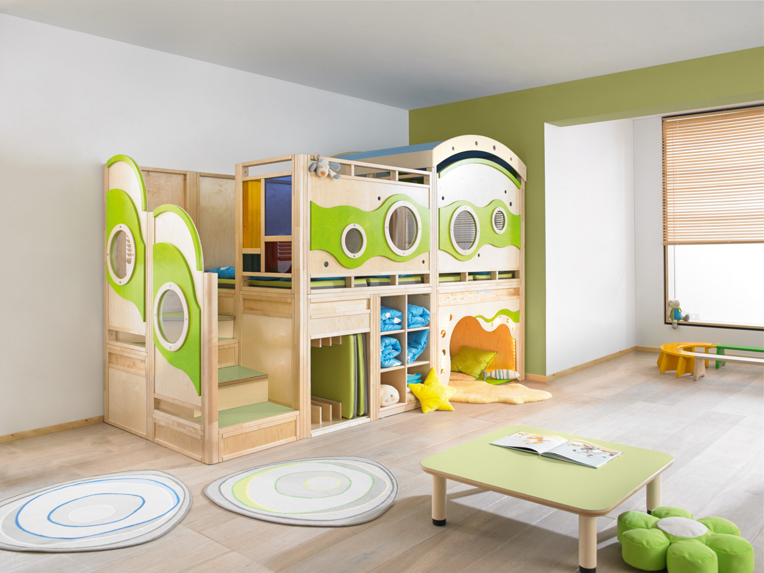 Ingebouwd ligkussen en kast voor 6 kinderen (Ligkussen, Artikelnummer 1024065, gelieve apart te bestellen)