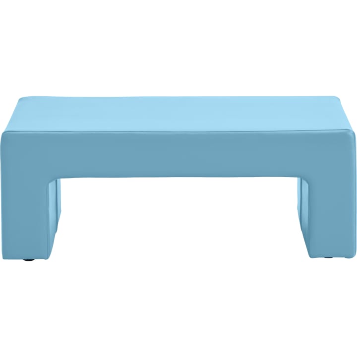 Volledig gestoffeerde bank met een onderstel van multiplex en polystyreen. Schuimvulling met kunstleren bekleding voor meer comfort. Er kunnen verschillende hoogtes voor gemengde leeftijdsgroepen en verschillende positioneringsopties worden besteld. Om ruimte te besparen kunnen de afzonderlijke banken dankzij de 15 mm hoge kunststof glijders eenvoudig in elkaar worden geschoven.