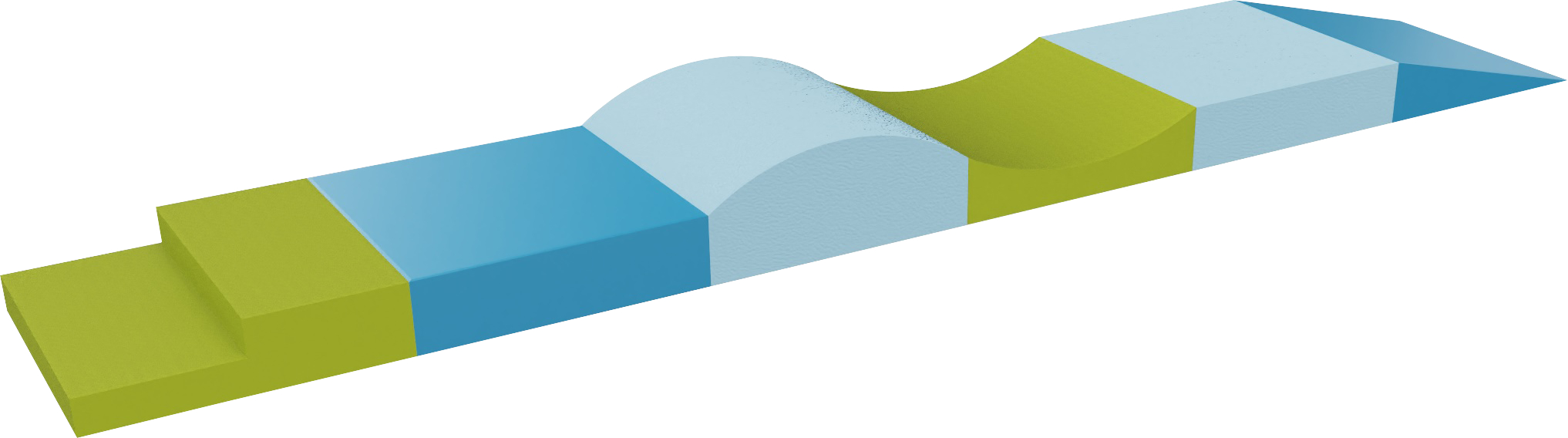 Ruimtevereiste: 480 x 80 cm, H 20 en 33 cm.
