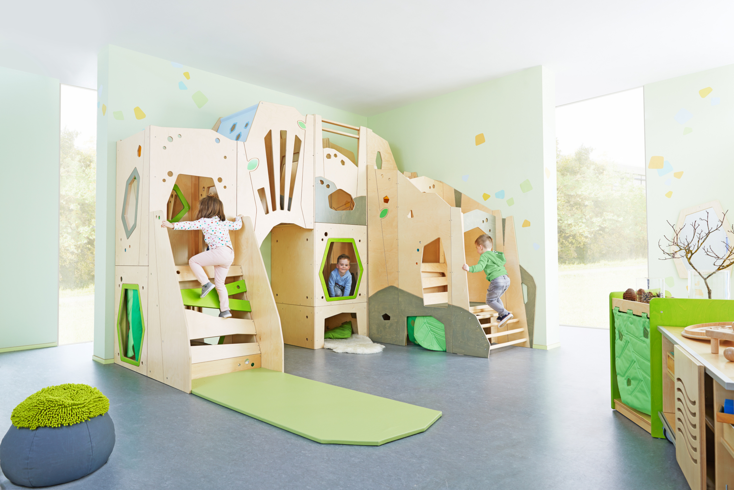 Elke verdieping in de toren en elke grot kan worden uitgerust met een ligkussen (Art.-Nr. 1327900). Daarnaast is een valbescherming (Art.-Nr. 1327897) absoluut noodzakelijk voor deze speelwereld. Beide gelieve apart te bestellen.