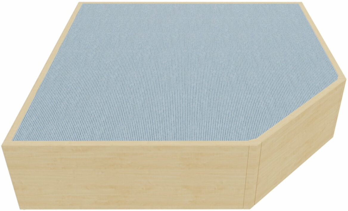 Het massief houten podium kan worden samengesteld met andere podiums op verschillende hoogtes om een diverse bewegings-, speel- en bouwhoek te creƫren. De ongewone vormen en combinaties kunnen de ruimte vergroten of deze volledig opnieuw indelen. Als de podium worden versierd met kussens en dekens, kunnen ze dienen als een toevluchtsoord om te ontspannen of knuffelen. De verschillende elementen en oppervlakken stimuleren de sensomotoriek, stimuleren creativiteit en laten de verbeelding de vrije loop.
