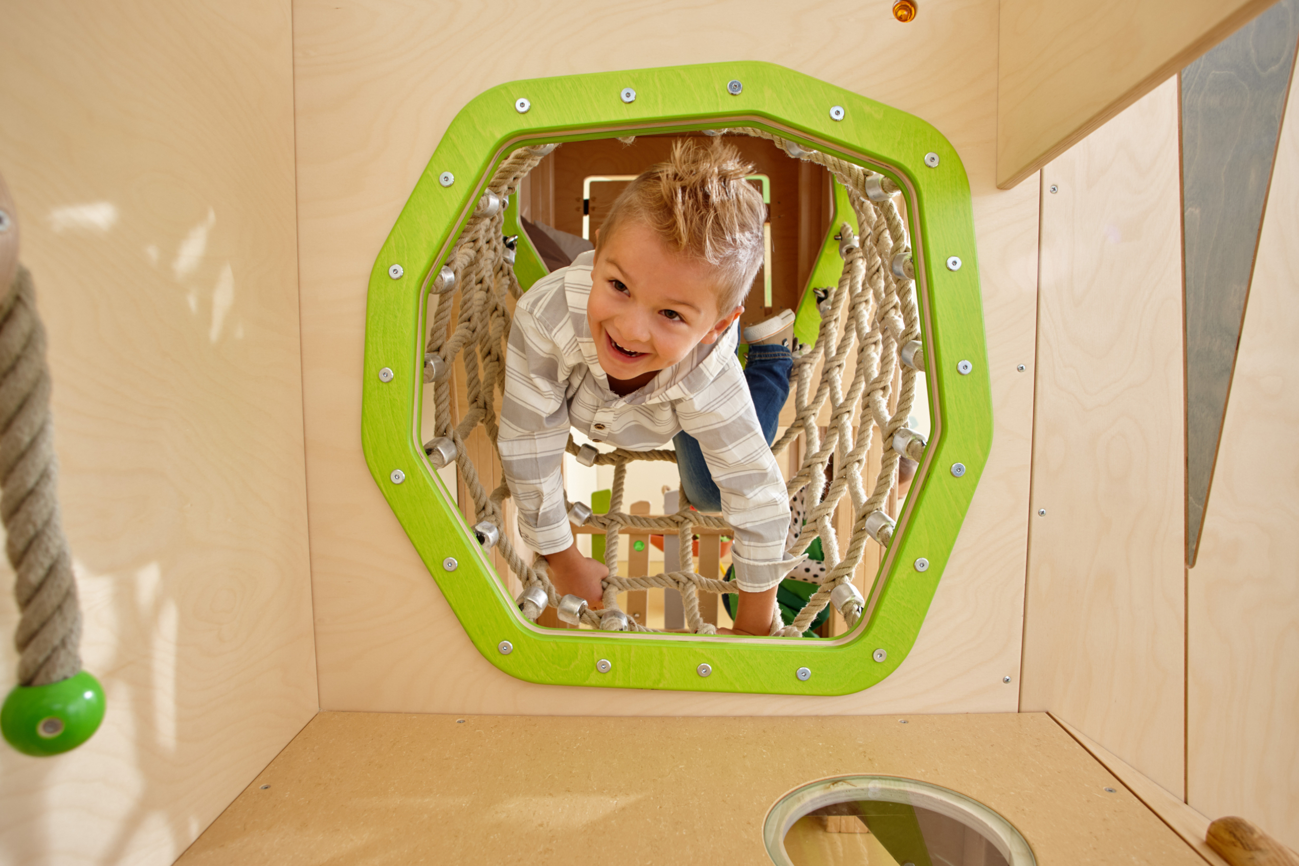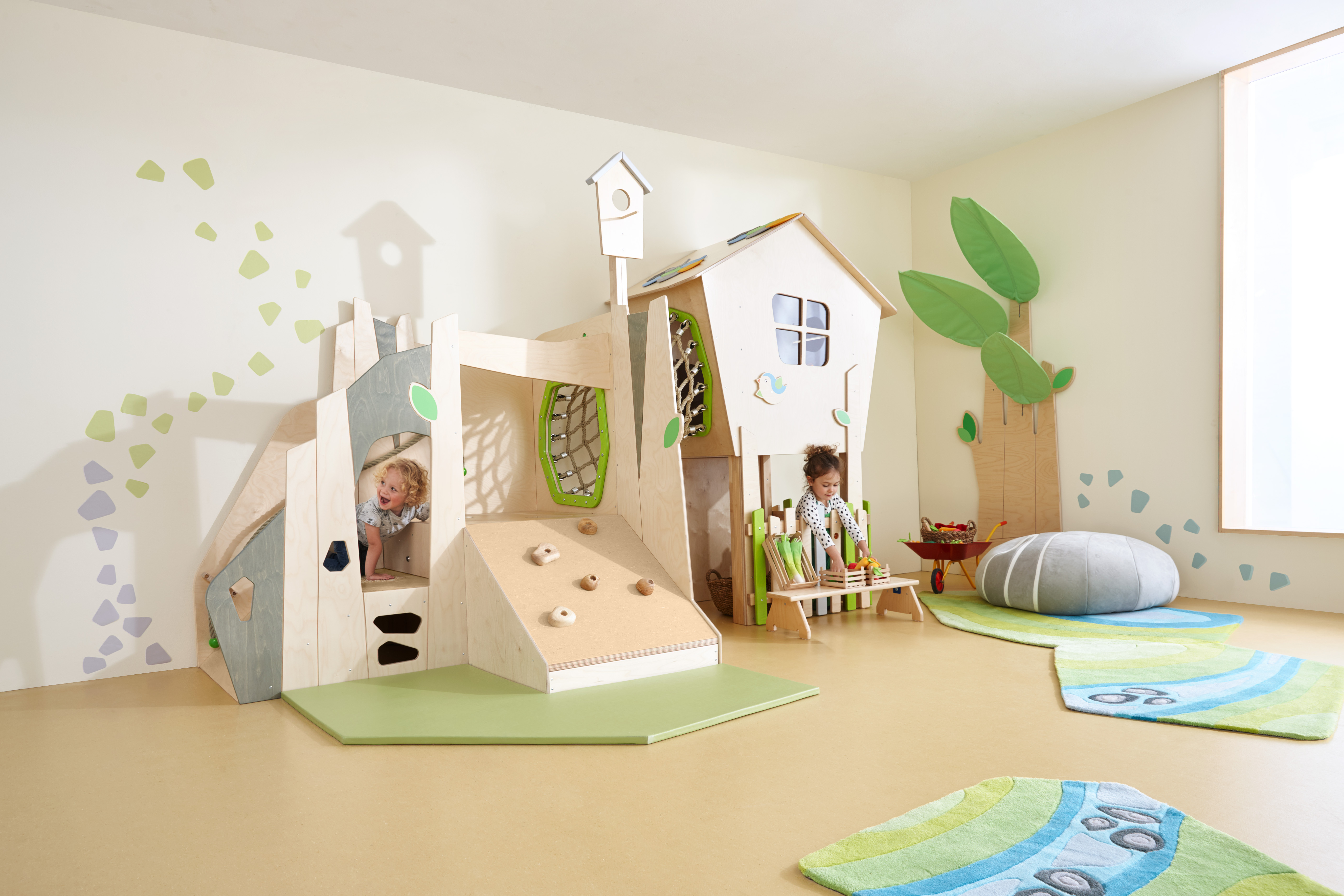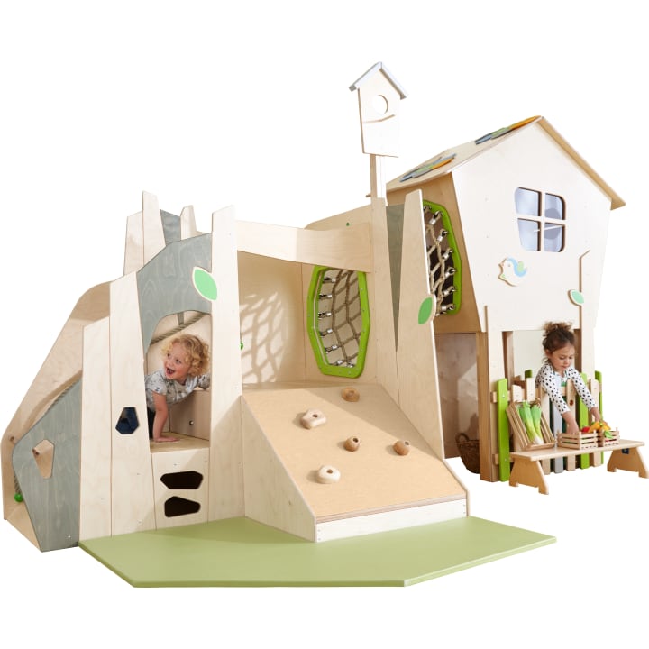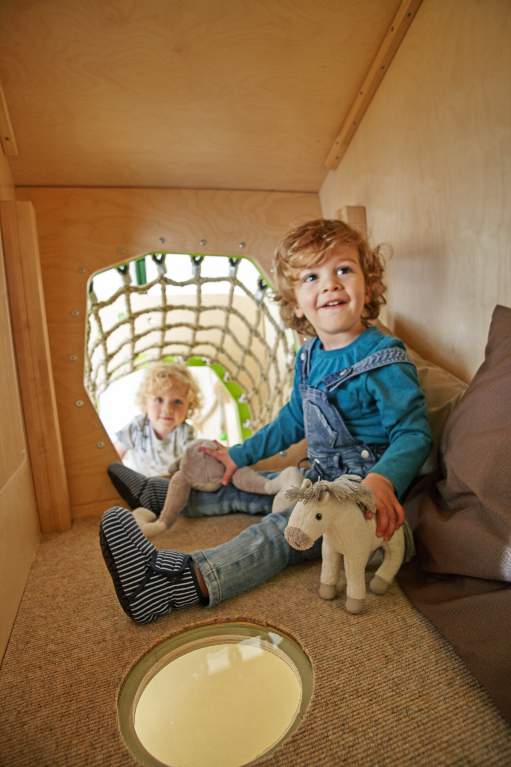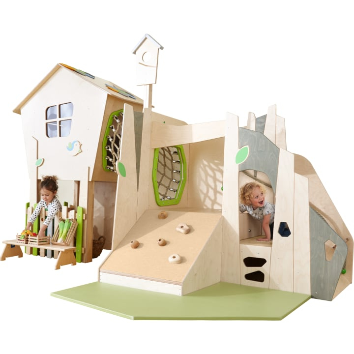 De grot kan worden uitgerust met een ligkussen, Art.-Nr. 1158844. Ook is een valbeveiliging, Art.-Nr. 1159168, absoluut noodzakelijk voor deze speelwereld. Beide apart bestellen.