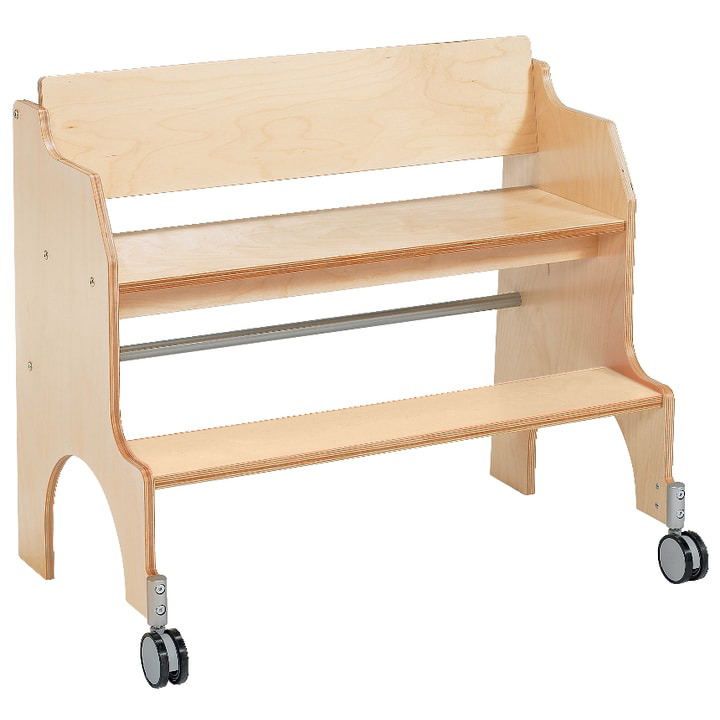 Maaltijden zijn leuker als jonge kinderen comfortabel, veilig en op ooghoogte met volwassenen aan tafel kunnen zitten. Hierdoor zitten ze midden in de actie en worden ze niet uitgesloten. Als iedereen op ooghoogte zit, hoeven de opvoeders in de crèche niet te bukken tijdens het eten. Dit vergemakkelijkt het werk en ontziet uw rug. De voetensteun is bekleed met geluidsisolerend linoleum. Aan de voorpoten van de bank bevinden zich twee volledig vergrendelbare zwenkwielen, waarmee de hoge bank kan worden verplaatst. Achter de rugleuning is een metalen staaf bevestigd, waarmee je de bank makkelijker kunt voortduwen. Terwijl de kinderen eten, worden de parkeerremmen vergrendeld om te voorkomen dat het bankje wegrolt. Op de hoge zitbank kunnen maximaal drie stoeltjes worden geplaatst.