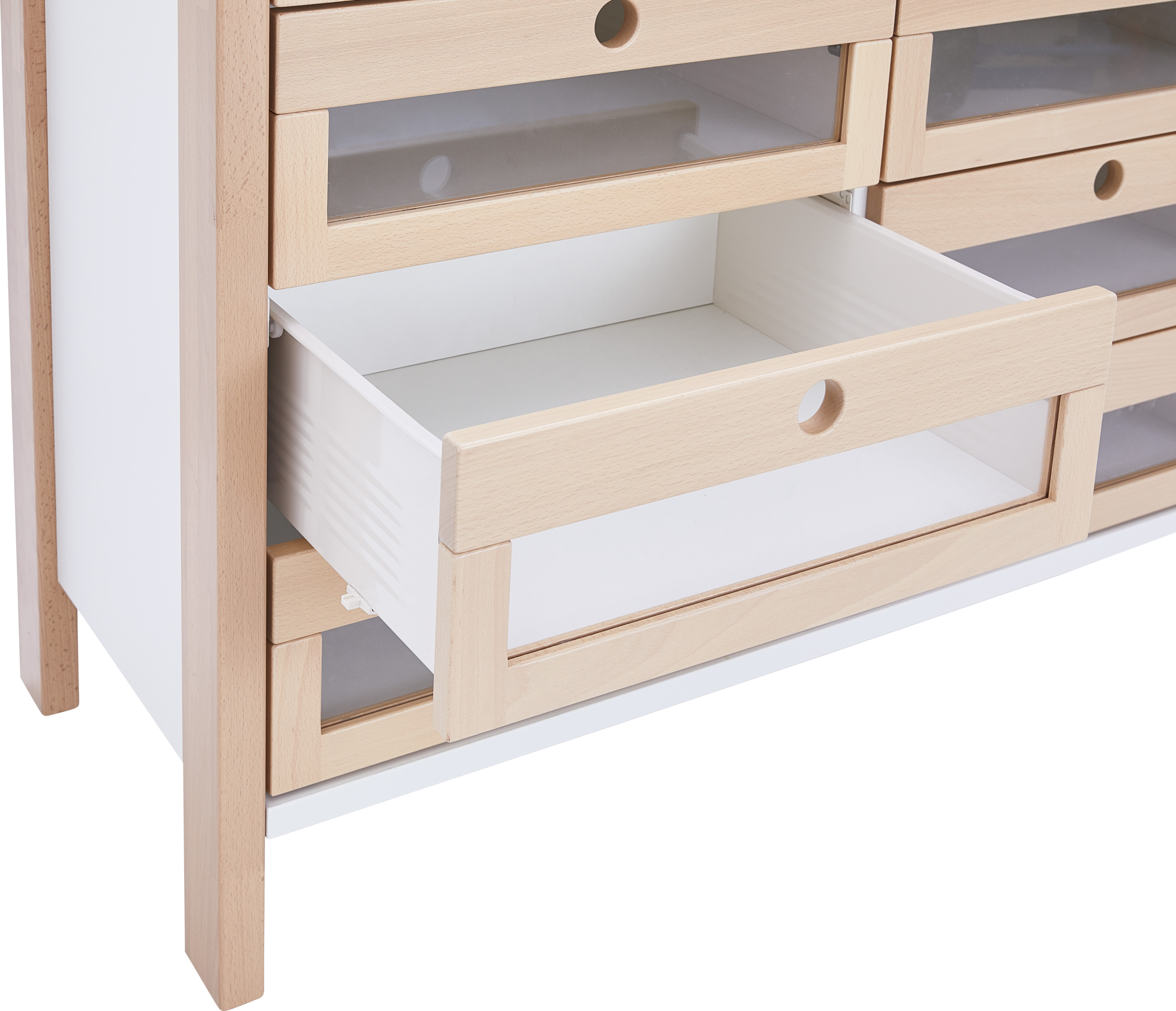De LiNUS serie is een kastenprogramma voor vele generaties. Het is geschikt voor gebruik in kinderdagverblijven en scholen en biedt een verscheidenheid aan kastmodellen, van wieg- tot ordnerkasten. LiNUS kasten kenmerken zich door een zinvolle materiaalkeuze. De dragende delen van de kasten zijn gemaakt van PEFC-gecertificeerd massief hout afkomstig uit duurzaam beheerde bossen. Zijkanten, achterwanden, bodems en bovenplaten van de kasten zijn gemaakt van hoogwaardige drielaagse spaanplaten met een bijzonder robuust melaminehars oppervlak. Dit kastenprogramma onderscheidt zich niet alleen door extreme stabiliteit, maar ook door een tijdloos ontwerp en moderne kleuren.