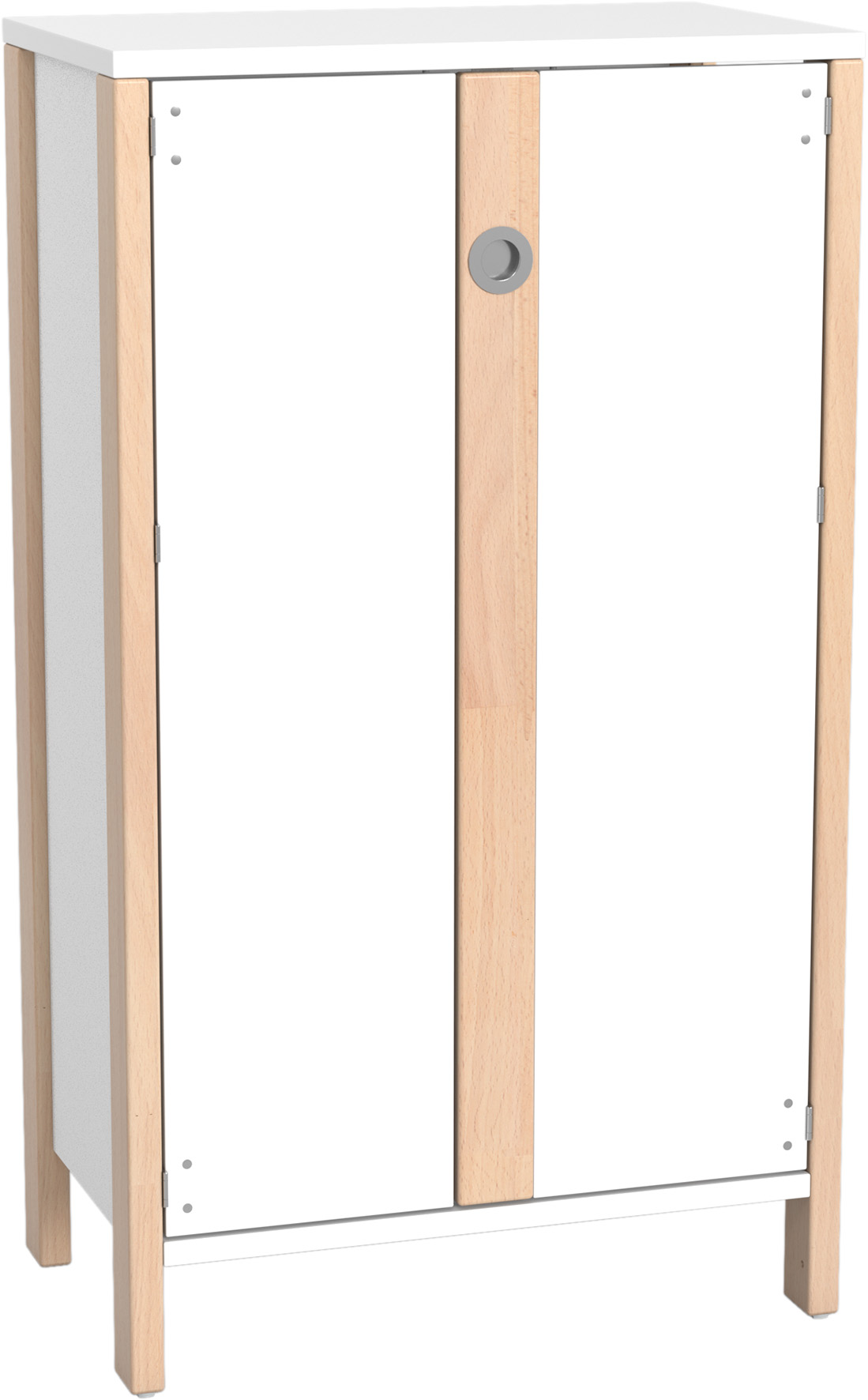 Kast met rechte handgreep, 1 vaste plank, 1 plank en 4 houten poten. Materiaalbakken passen niet in deze kast.