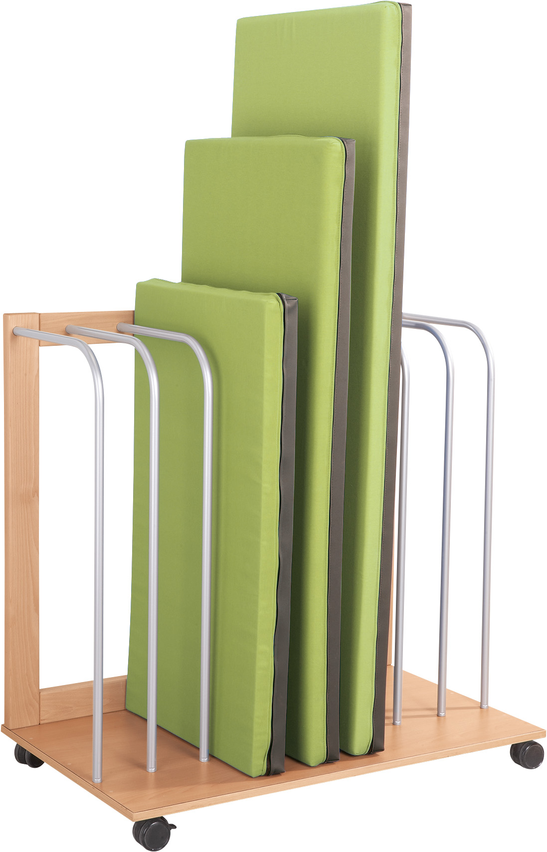 Voor 8 loungekussens van 115 - 160 cm. Met 4 wielen, waarvan 2 vergrendelbaar.