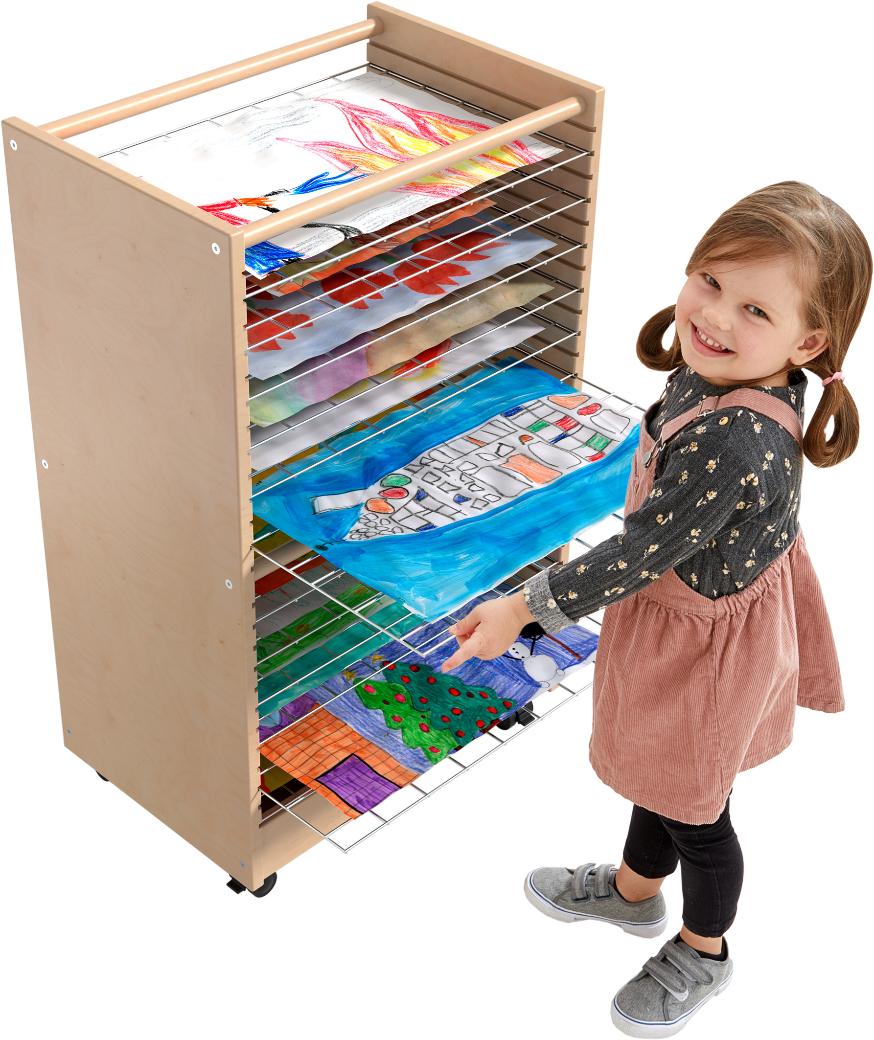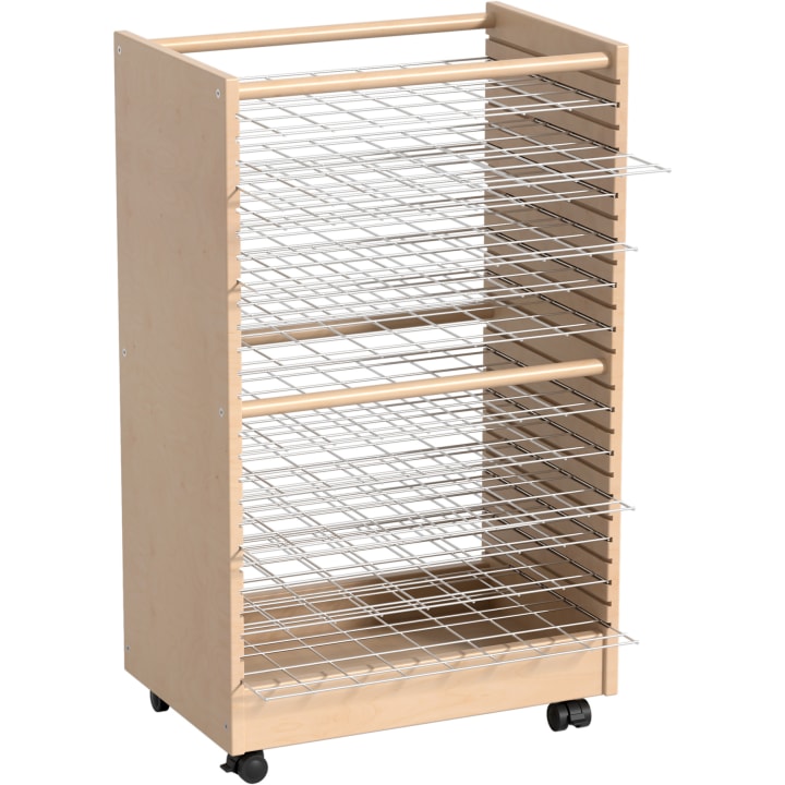 Biedt ruimte voor 25 droogroosters of schilderplaten (apart te bestellen). Materiaal: voetstuk van massief beukenhout, zijwanden van massief hout, licht gefineerd. Afmetingen: ca. B 51,1 x H 85 x D 34 cm.