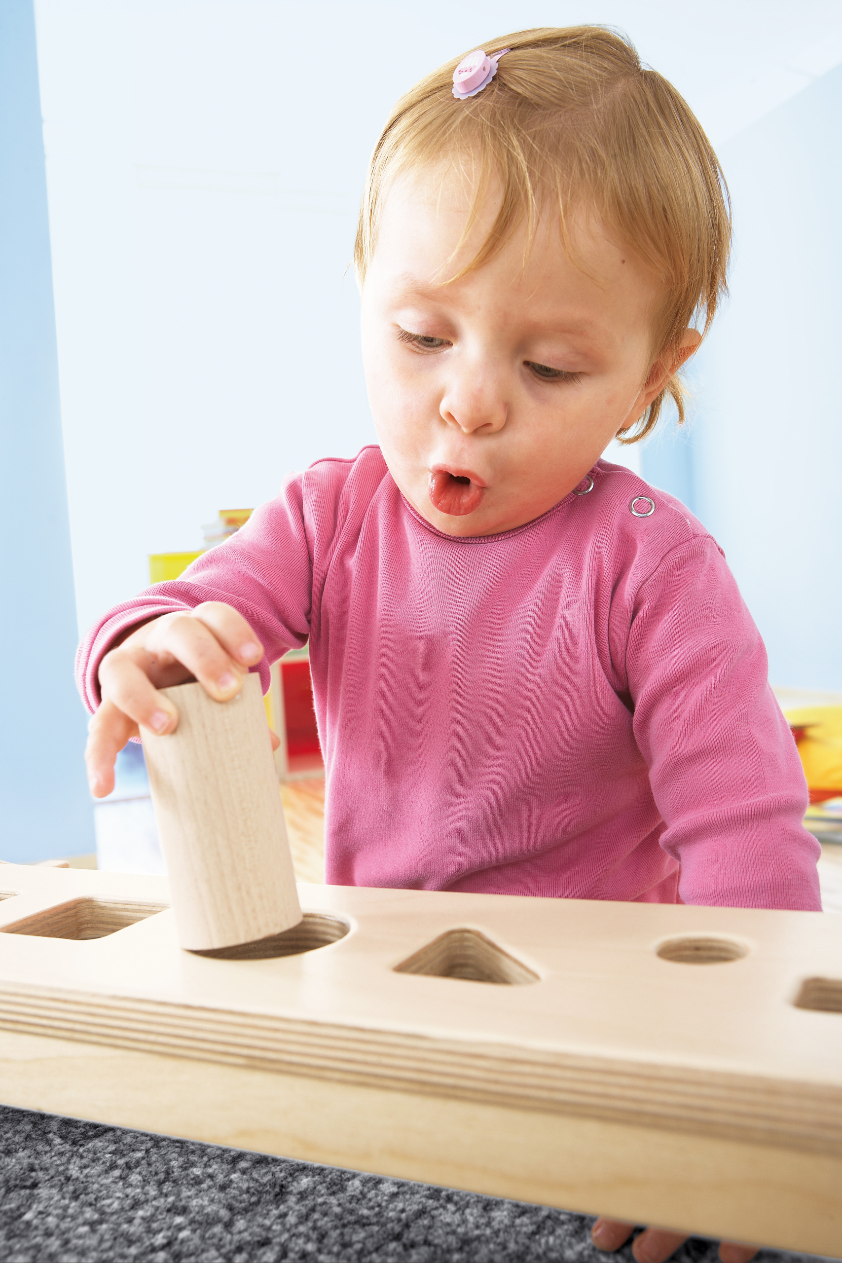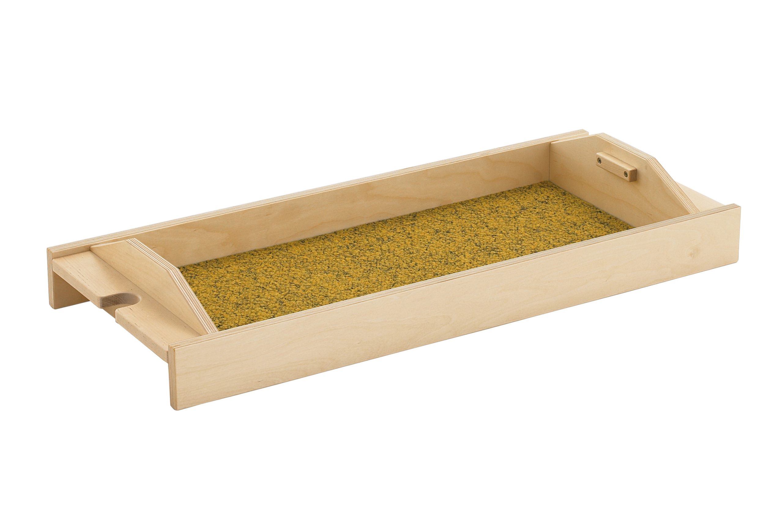 Bedekt met beschermende vloerbedekking. Met 2 sorteerlijsten en 17 geometrische figuren.