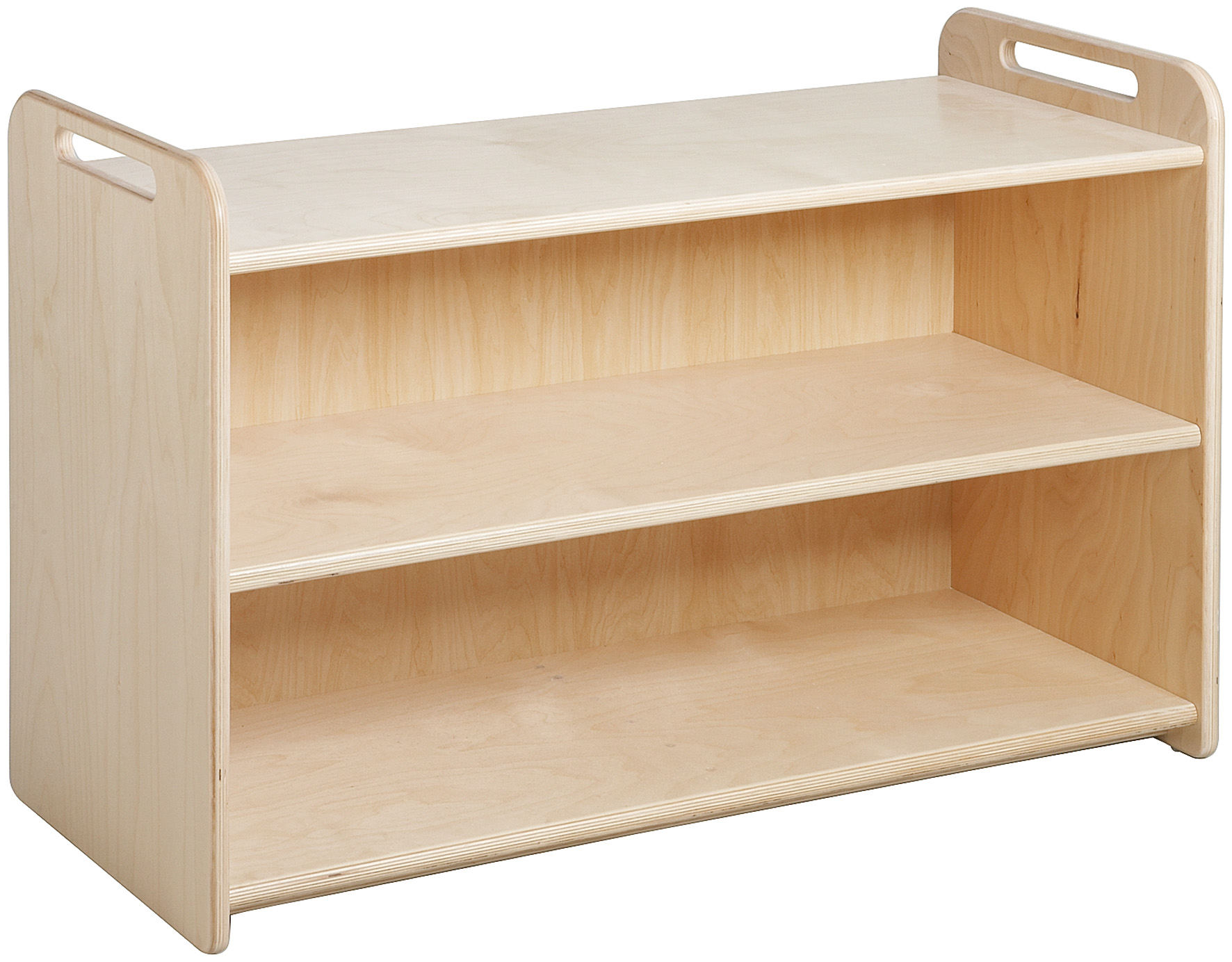 Met 1 vaste plank. Deze kast heeft precies de juiste hoogte voor de kleintjes: voor iedereen die nog kruipend de wereld ontdekt, maar ook voor wie al rechtop probeert te lopen. De zijkanten zijn speciaal ontworpen voor hen. Hier vinden ze ondersteuning bij het optrekken en ook tijdens het staan. Over het algemeen is de hoogte zo gekozen dat ze zich kunnen vasthouden of ondersteunen tijdens het lopen. Omdat het risico op vallen voor beginners vrij groot is, heeft de kast uiteraard geen scherpe hoeken of randen. Ze zijn allemaal veilig afgerond met een straal van 5 mm.