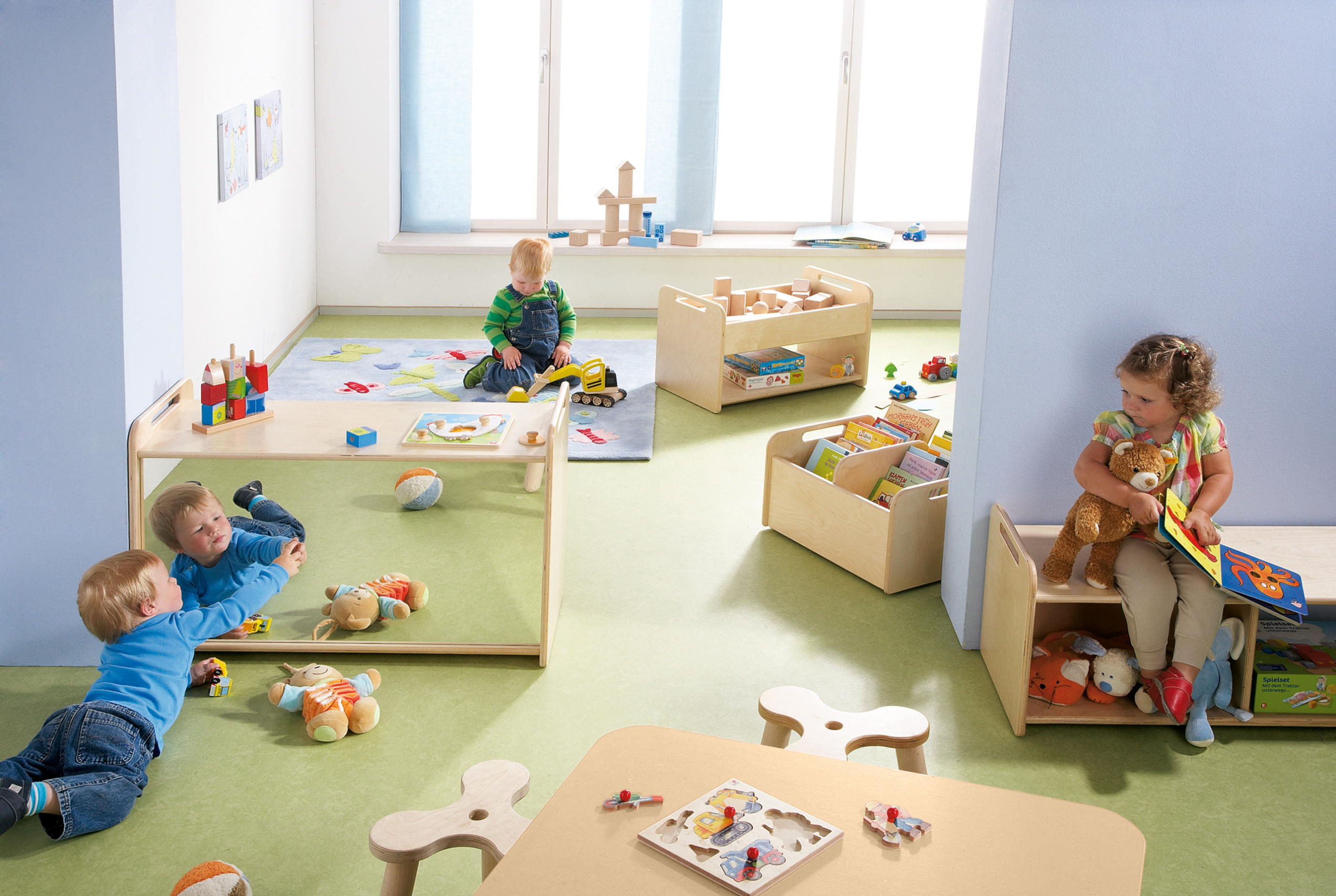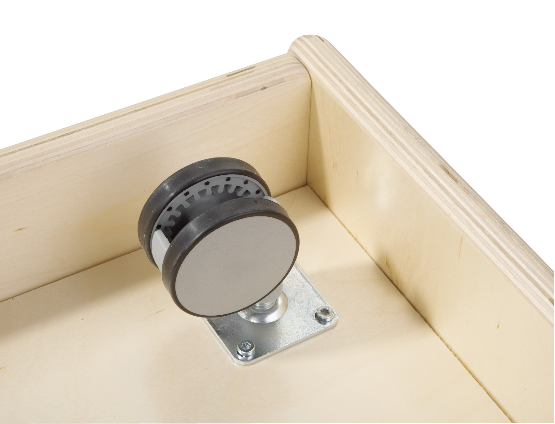 Voor het opbergen van bouwstenen, boeken en meer - de zijwanden zijn bijna tot aan de grond getrokken, zodat ze de wielen bijna volledig bedekken en kinderhanden niet zomaar onder de wagen kunnen grijpen.