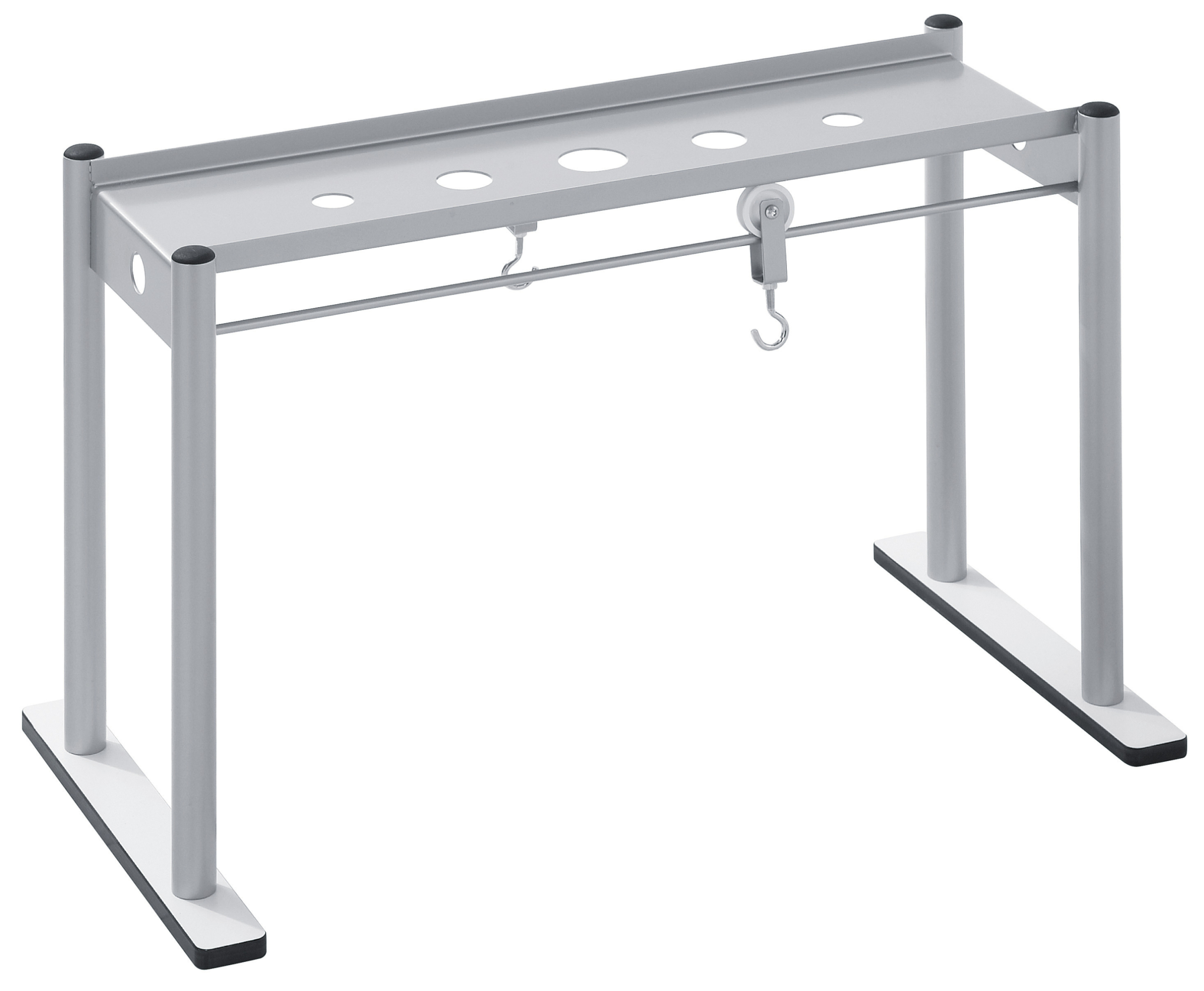 Met boorgaten voor slangen en trechters, evenals 2 rollende haken voor emmers en kannen. Het past op het onderzoekscentrum "Water" en alle experimenteerframes. Dankzij de klossen kan het erop worden verplaatst.