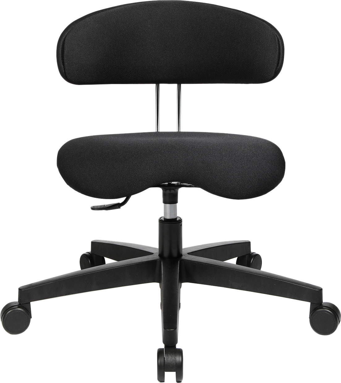 Stevige stoel: de rugleuning kan in hoogte en naar achteren worden versteld, waardoor de zitdiepte variabel is. In combinatie met de orthopedische zadelzitting is vermoeidheidsvrij en gezond zitten mogelijk. De zithoogte kan traploos worden verlaagd van 47 cm tot 34 cm met behulp van de Toplift. Remmende veiligheidsrollen, afhankelijk van de belasting, beschermen de vloeren, ook tapijtvloeren! Met een stevig kunststof voetkruis.