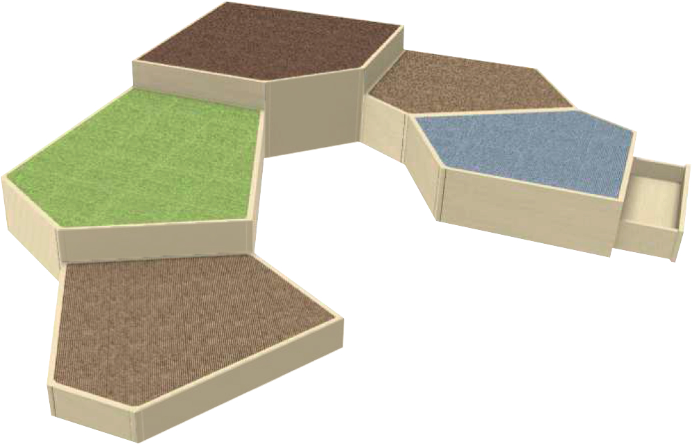 Materiaal: berken, Tretford-bekleding, kleuren als afgebeeld.