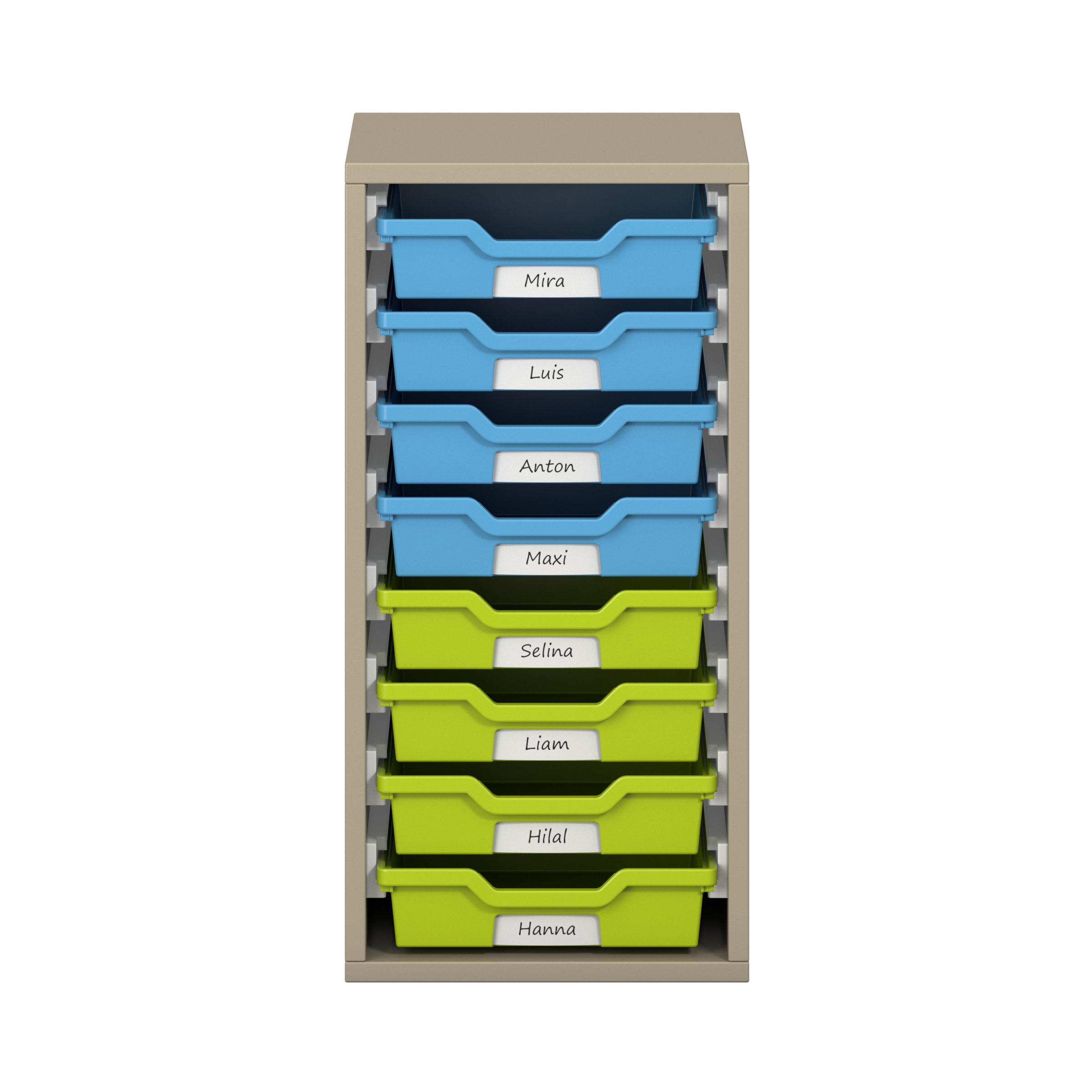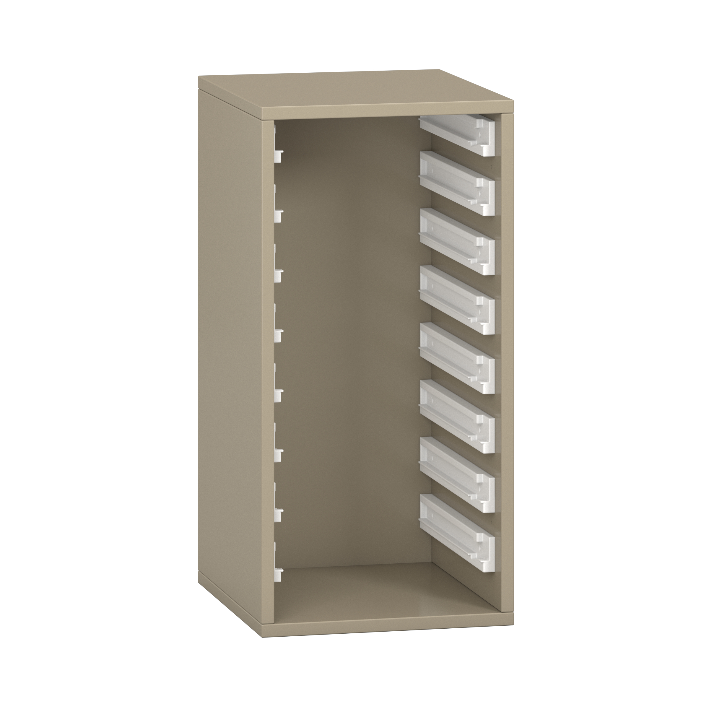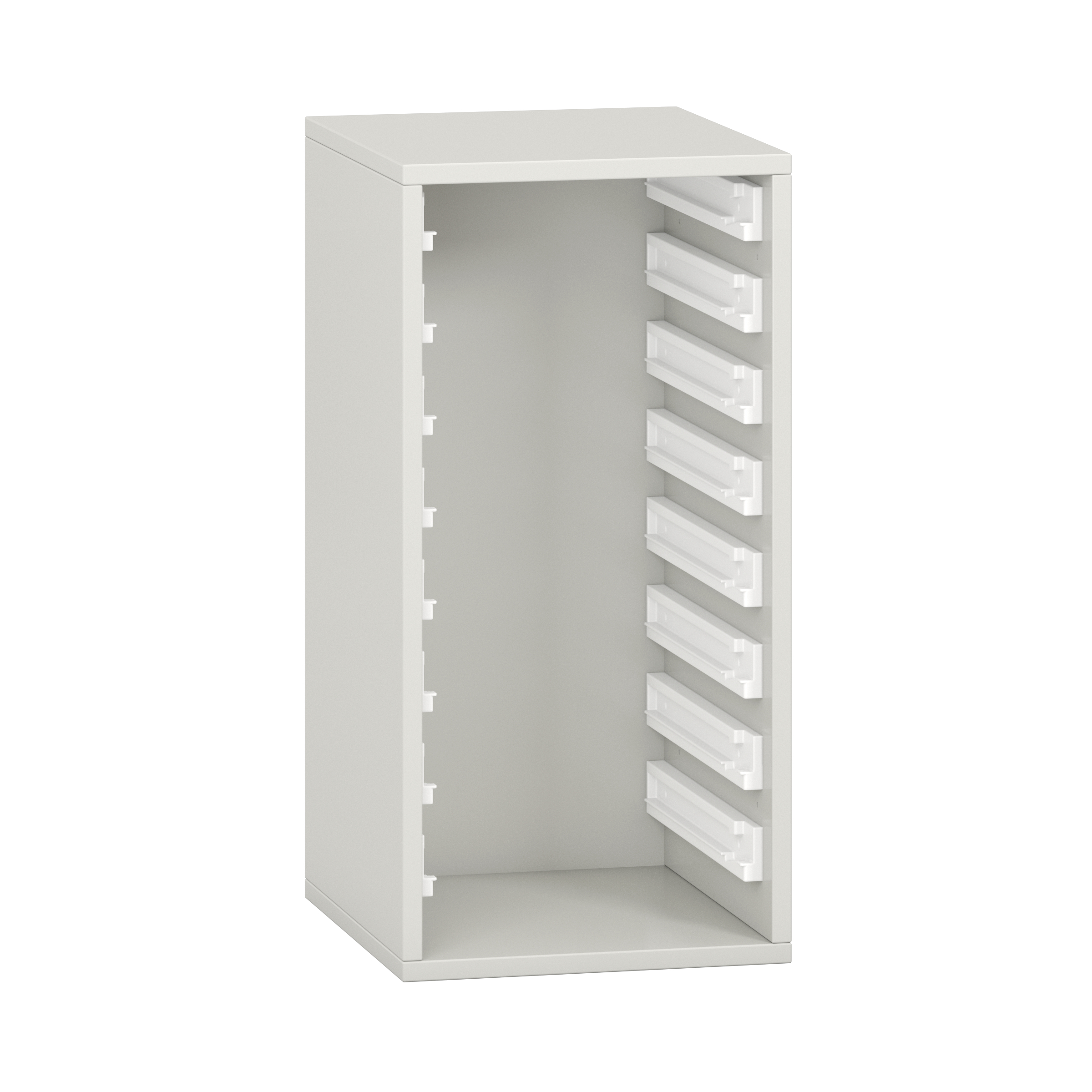 Met rails voor maximaal 8 materiaalbakken. De materiaalbakken zijn afzonderlijk te bestellen.