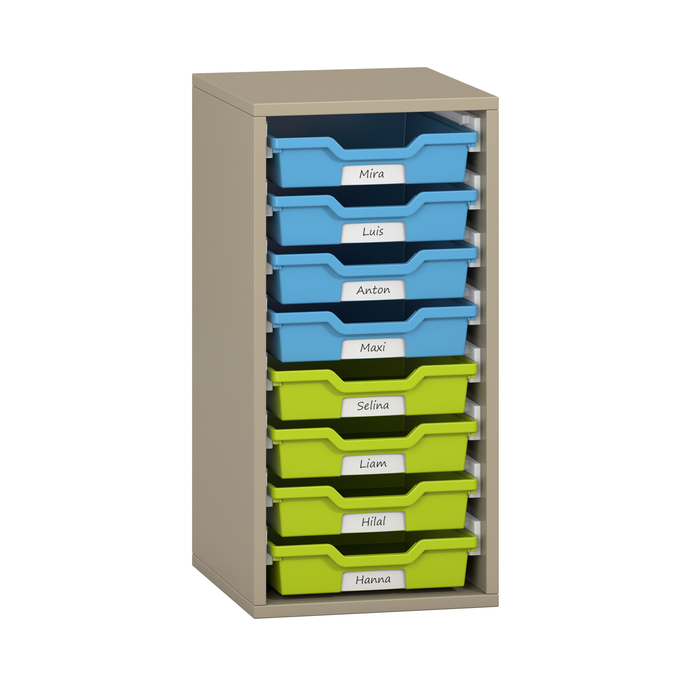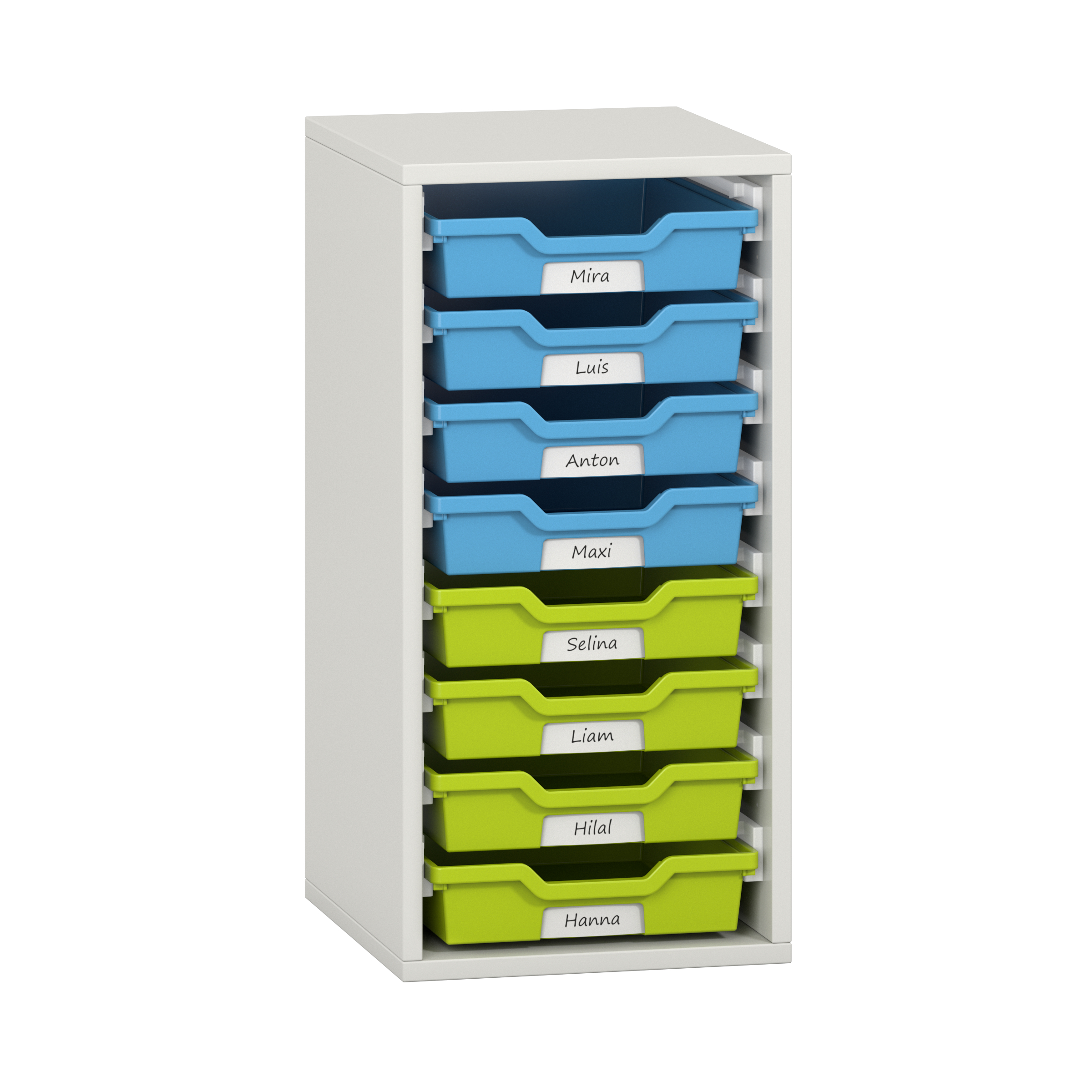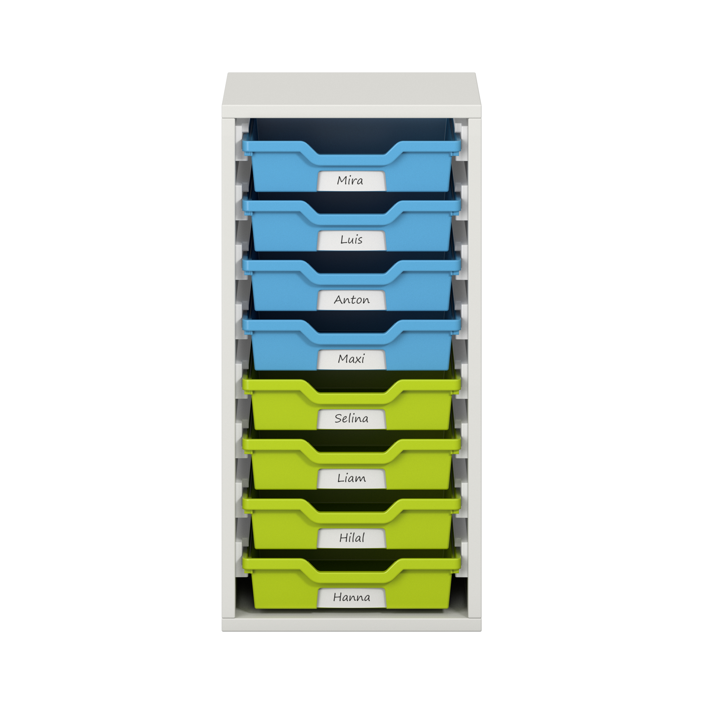 Met rails voor maximaal 8 materiaalbakken. De materiaalbakken zijn afzonderlijk te bestellen.
