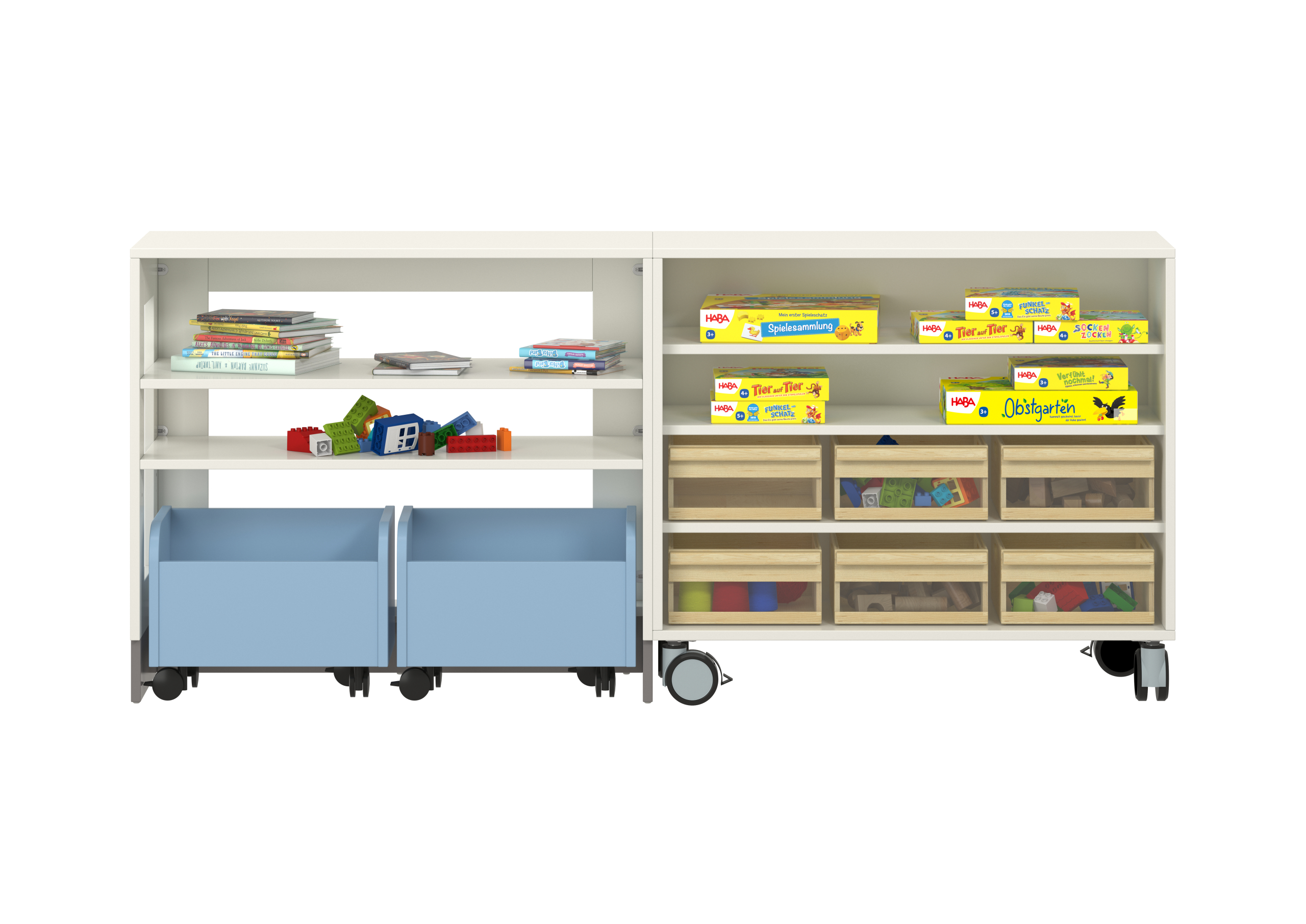 Ideaal voor de bouwhoek! Alles wat kleine architecten, bouwers, stadsplanners en treinmachinisten moeten doen, past hier in. Je kunt ook bijhouden wie waar speelt. Decoratie niet inbegrepen. Materiaal: Spaanplaat wit decor. Afmetingen: B 200 x H 87,5 x D 42 cm.