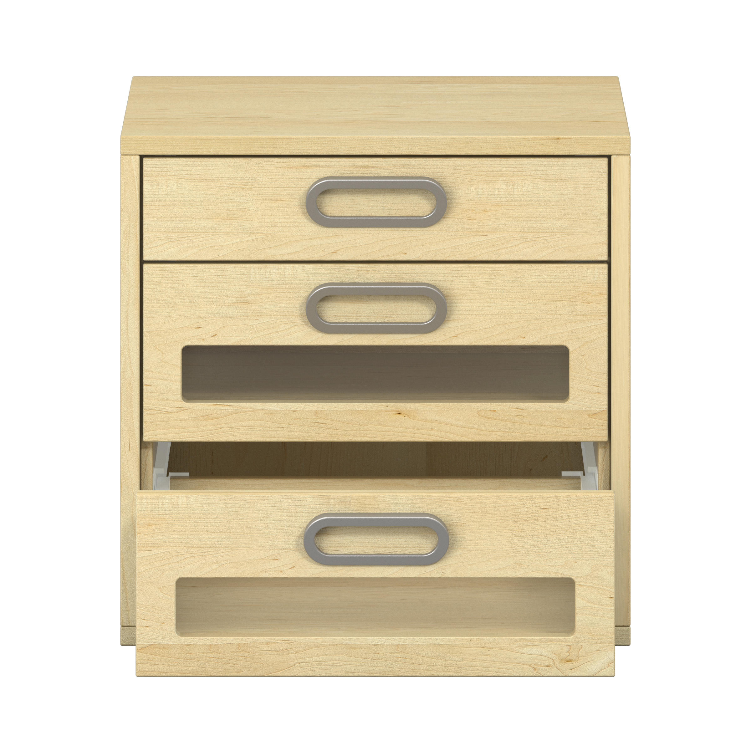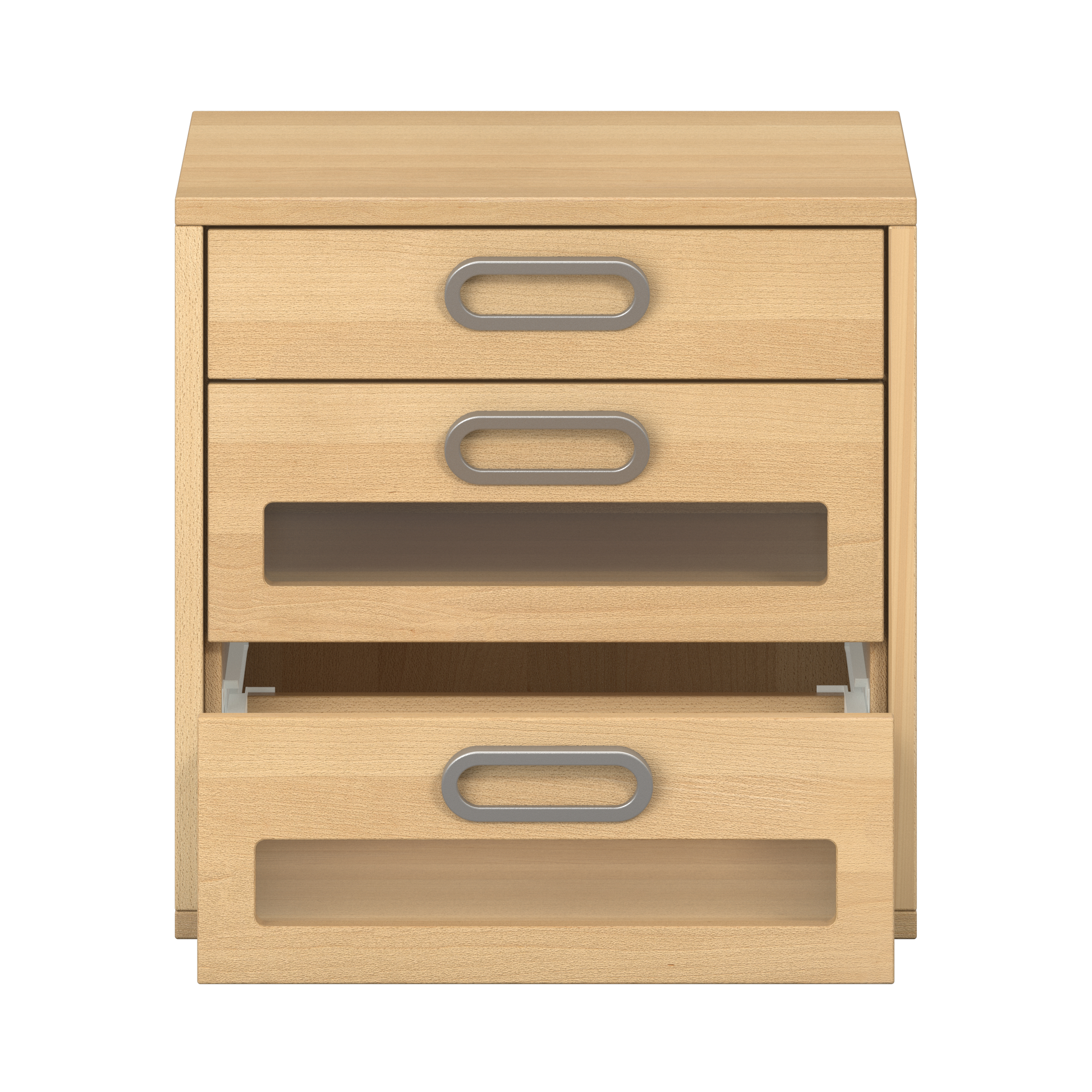 2 lades met acryl inzet en 1 lage gesloten lade. Alle lades met soft-close functie.