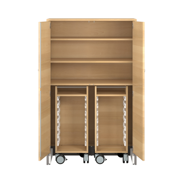 1 vaste bodem, 2 legplanken, 2 rolwagens met totaal vier vergrendelbare wielen. Materiaalbakken apart bestellen.