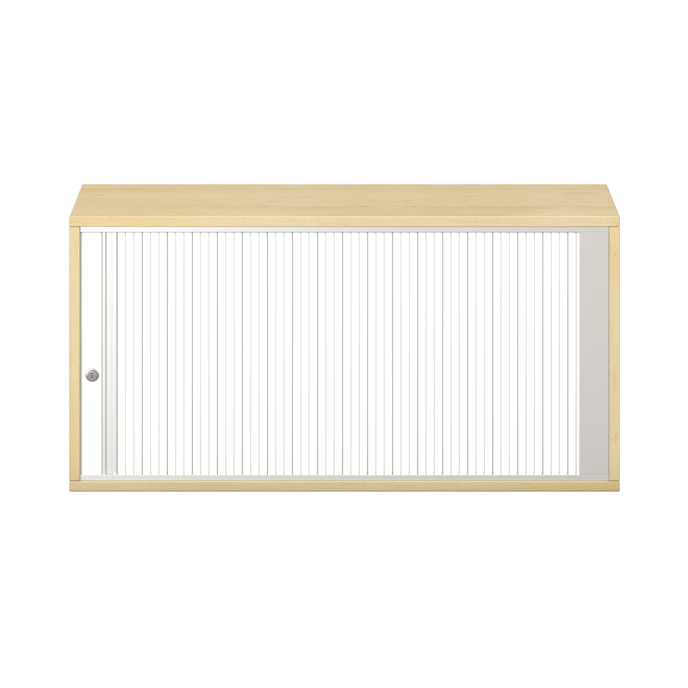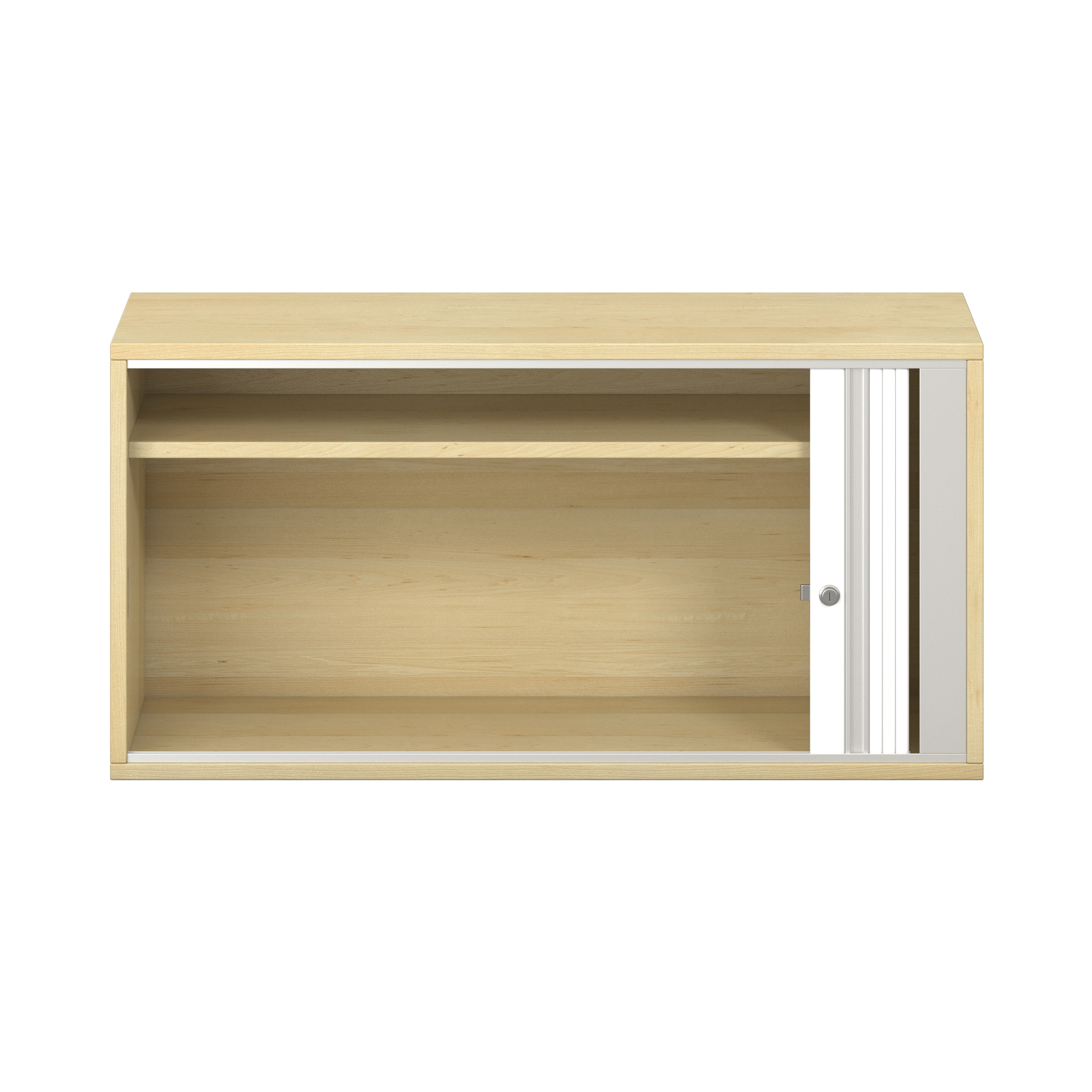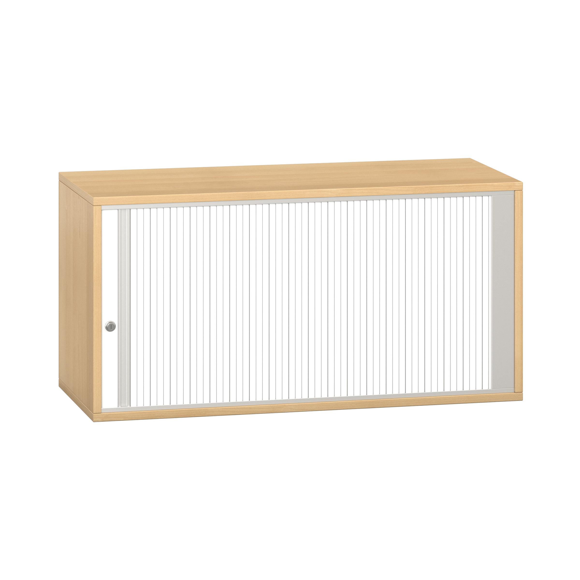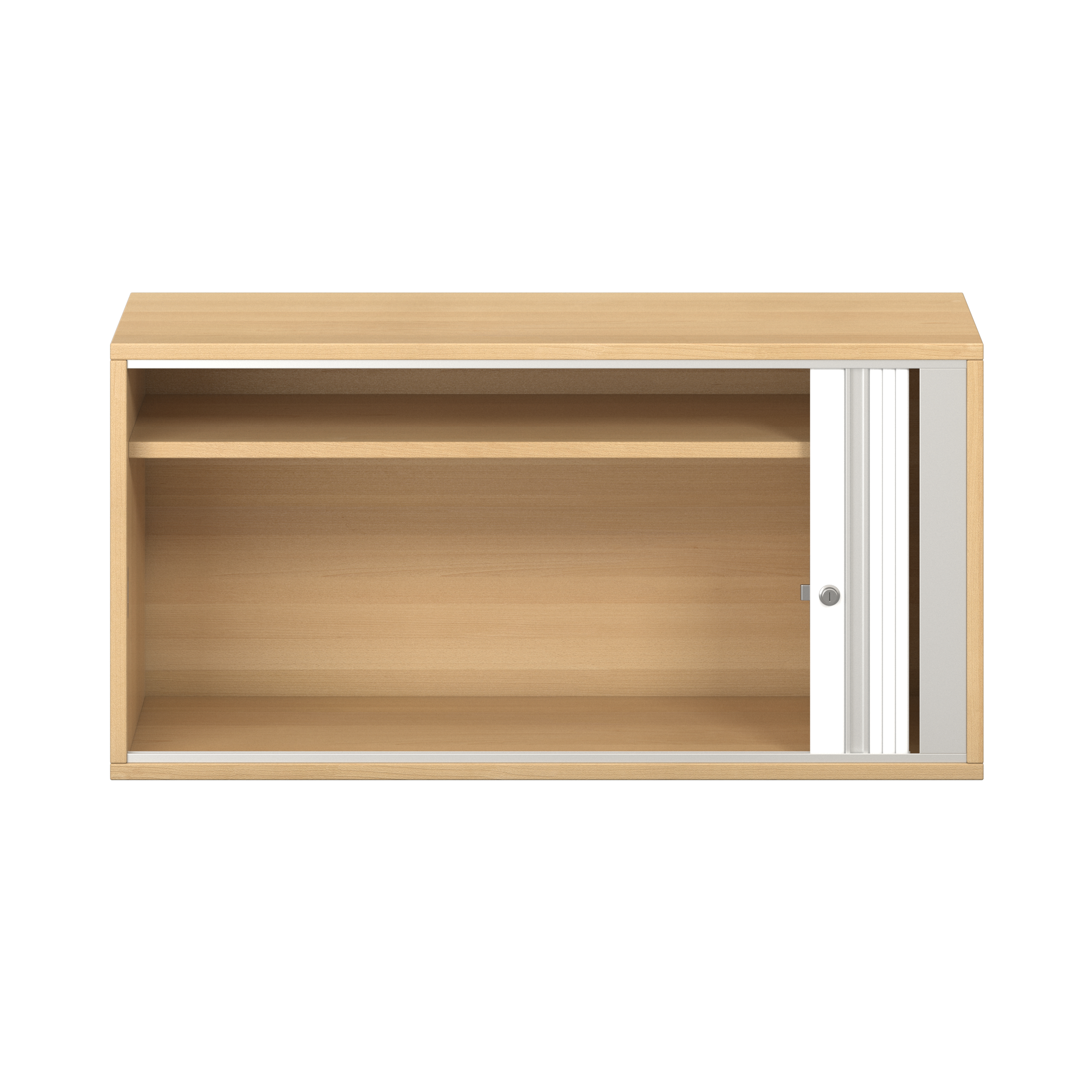 1 legplank. Afsluitbare horizontale rolluik met grepenlijst. Voor 10 ordnermappen met een maximale breedte van 8 cm.
