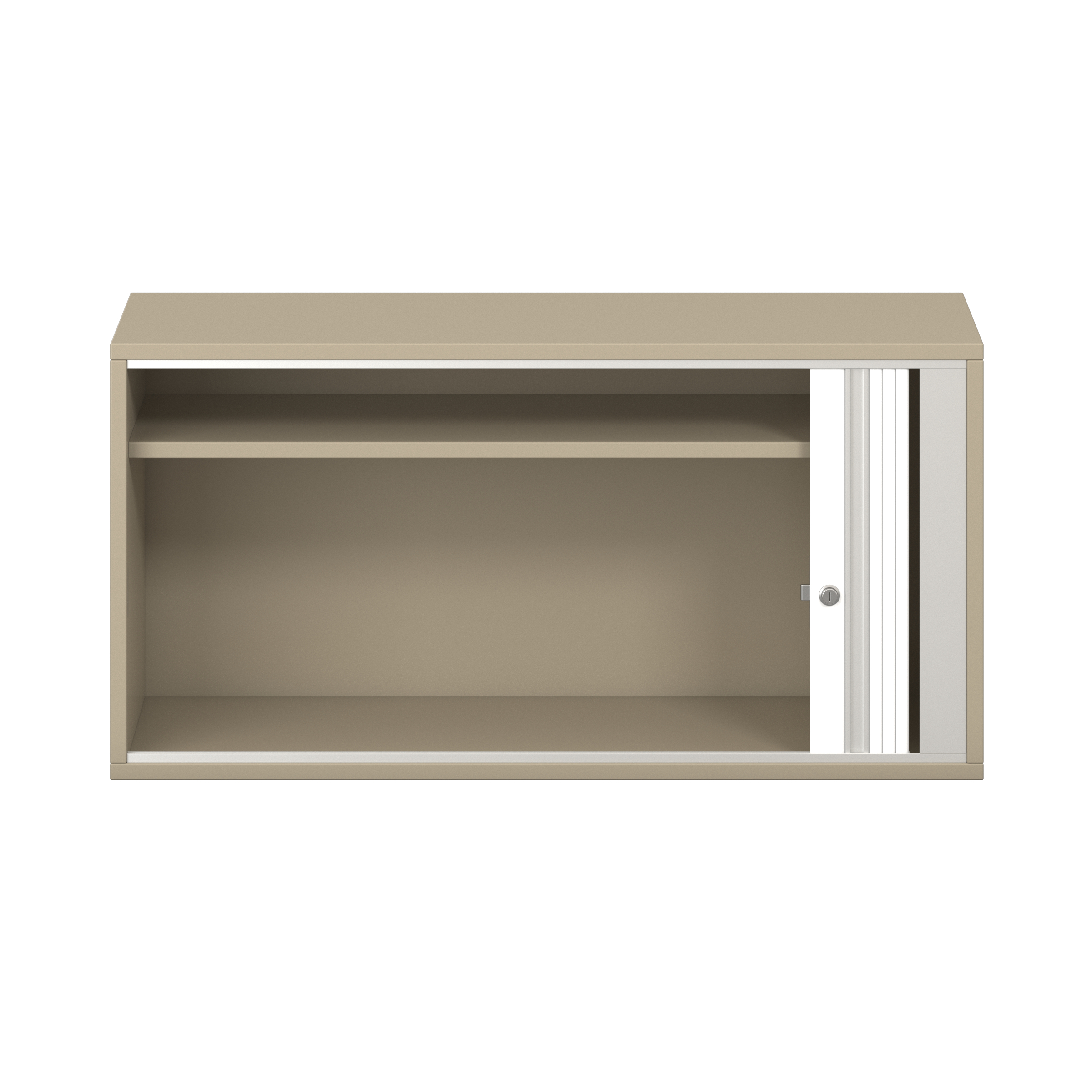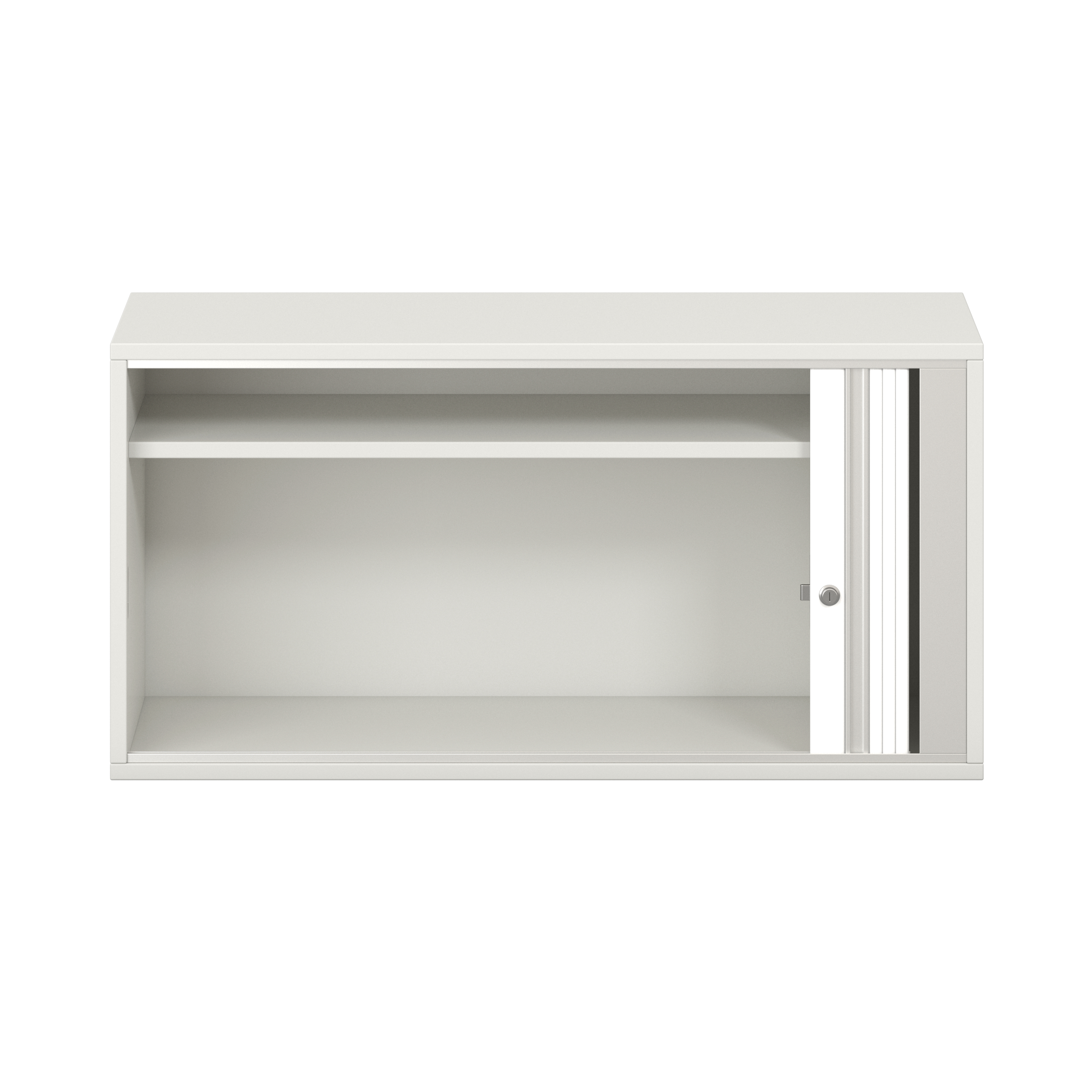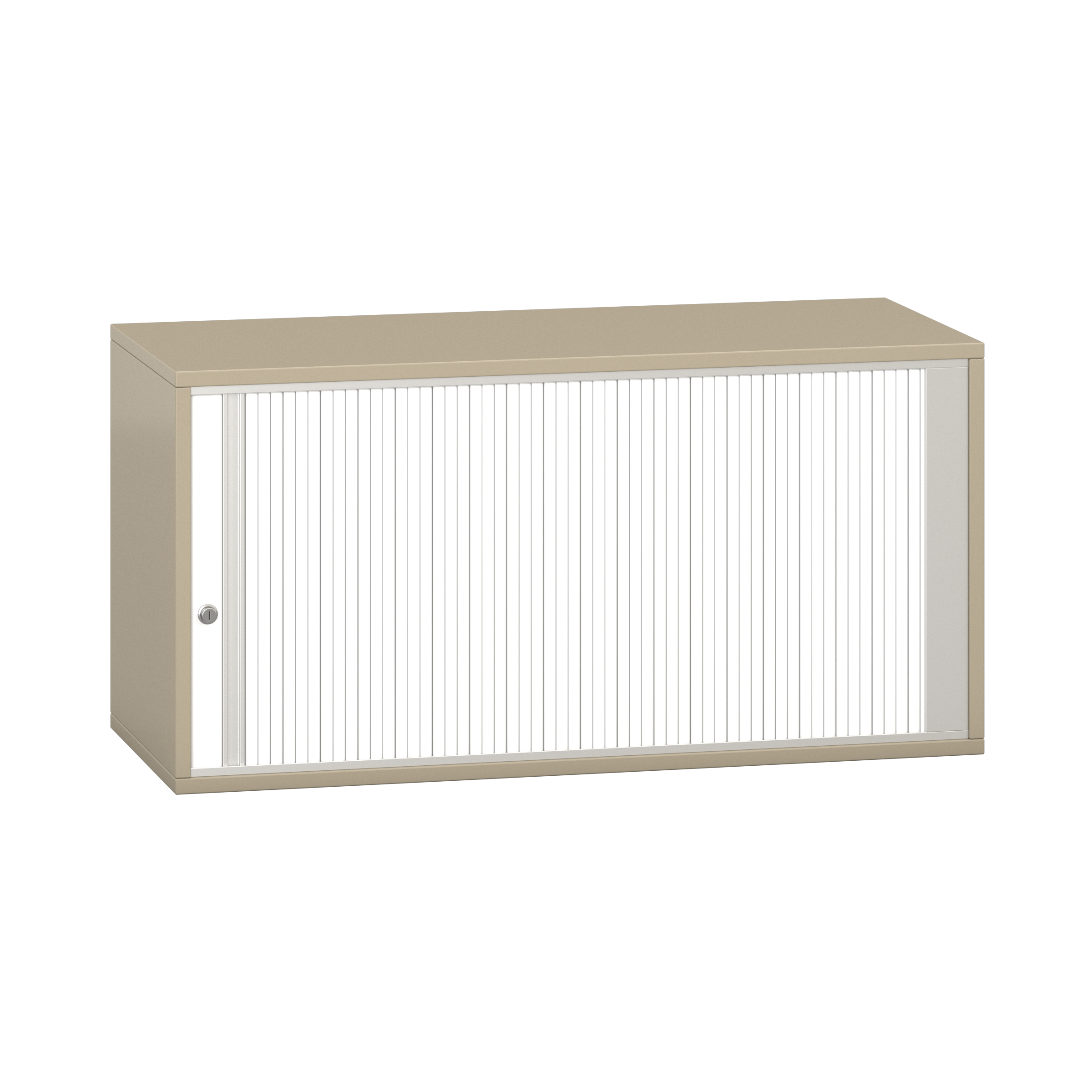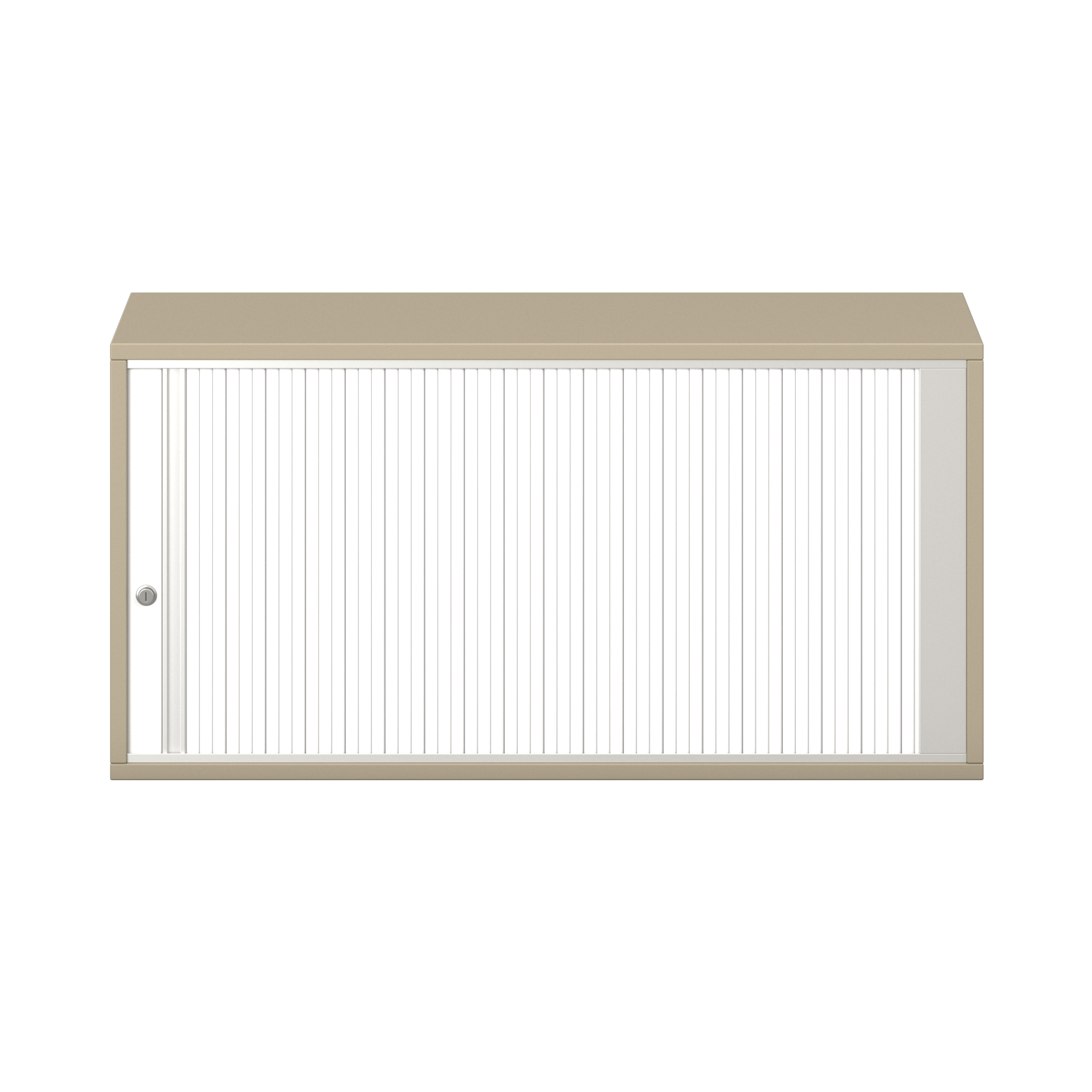 1 legplank. Afsluitbare horizontale rolluik met grepenlijst. Voor 10 ordnermappen met een maximale breedte van 8 cm.