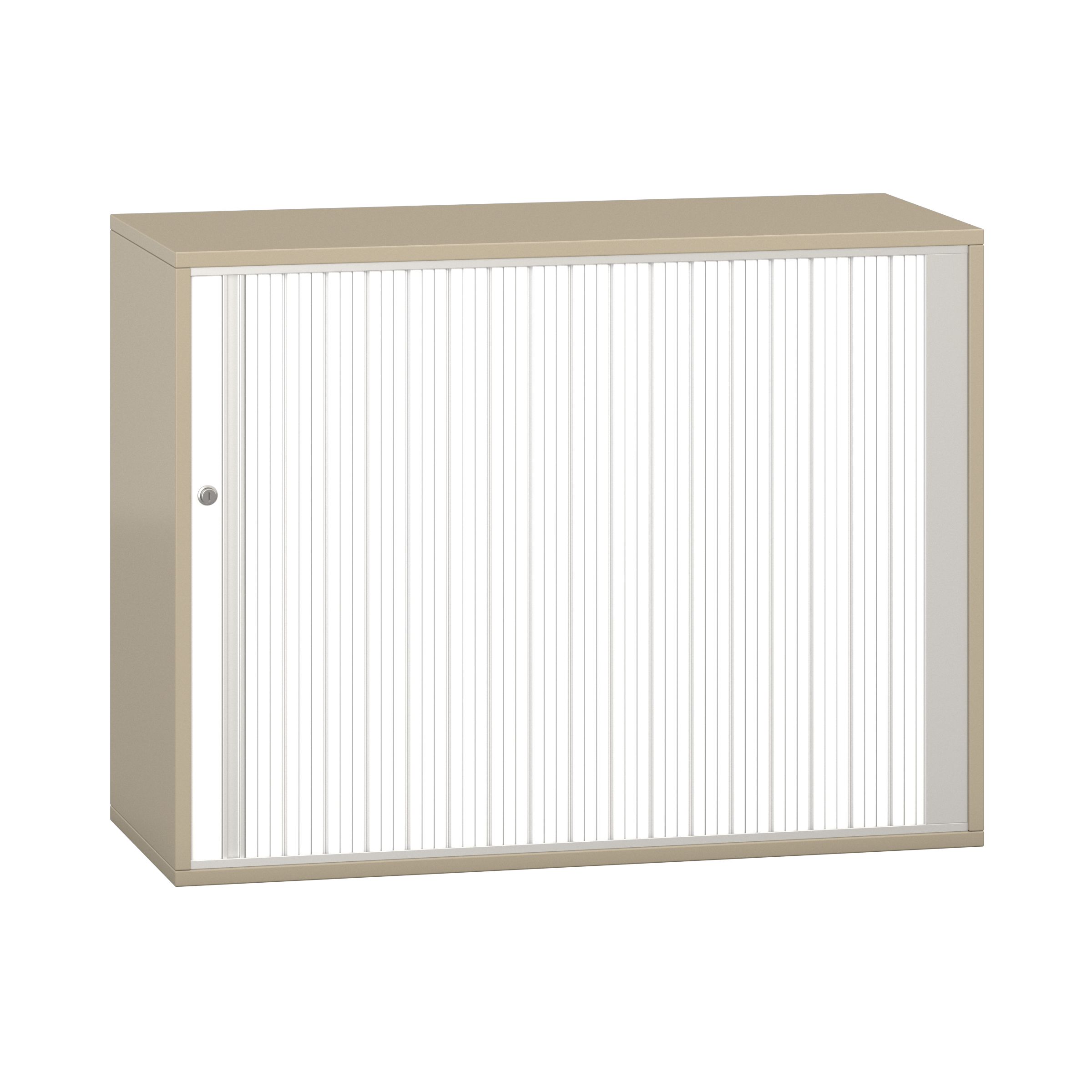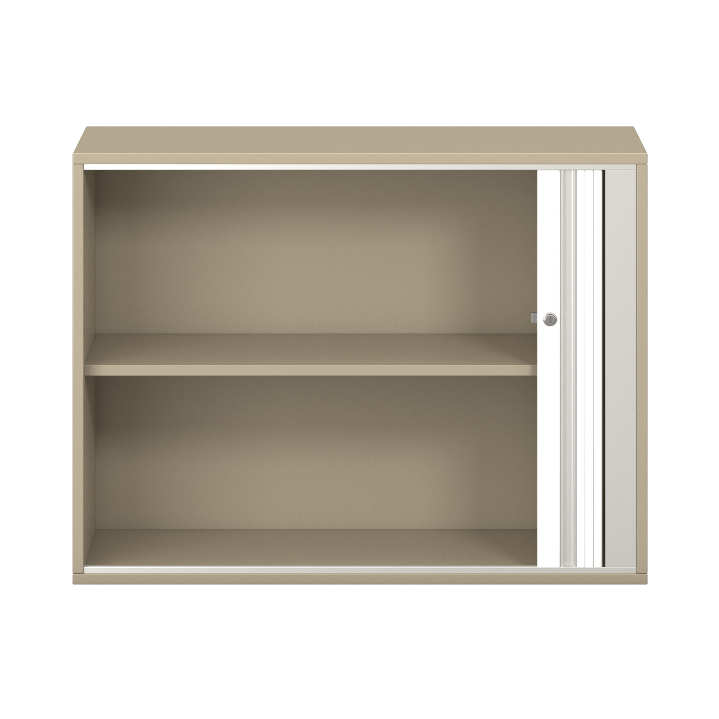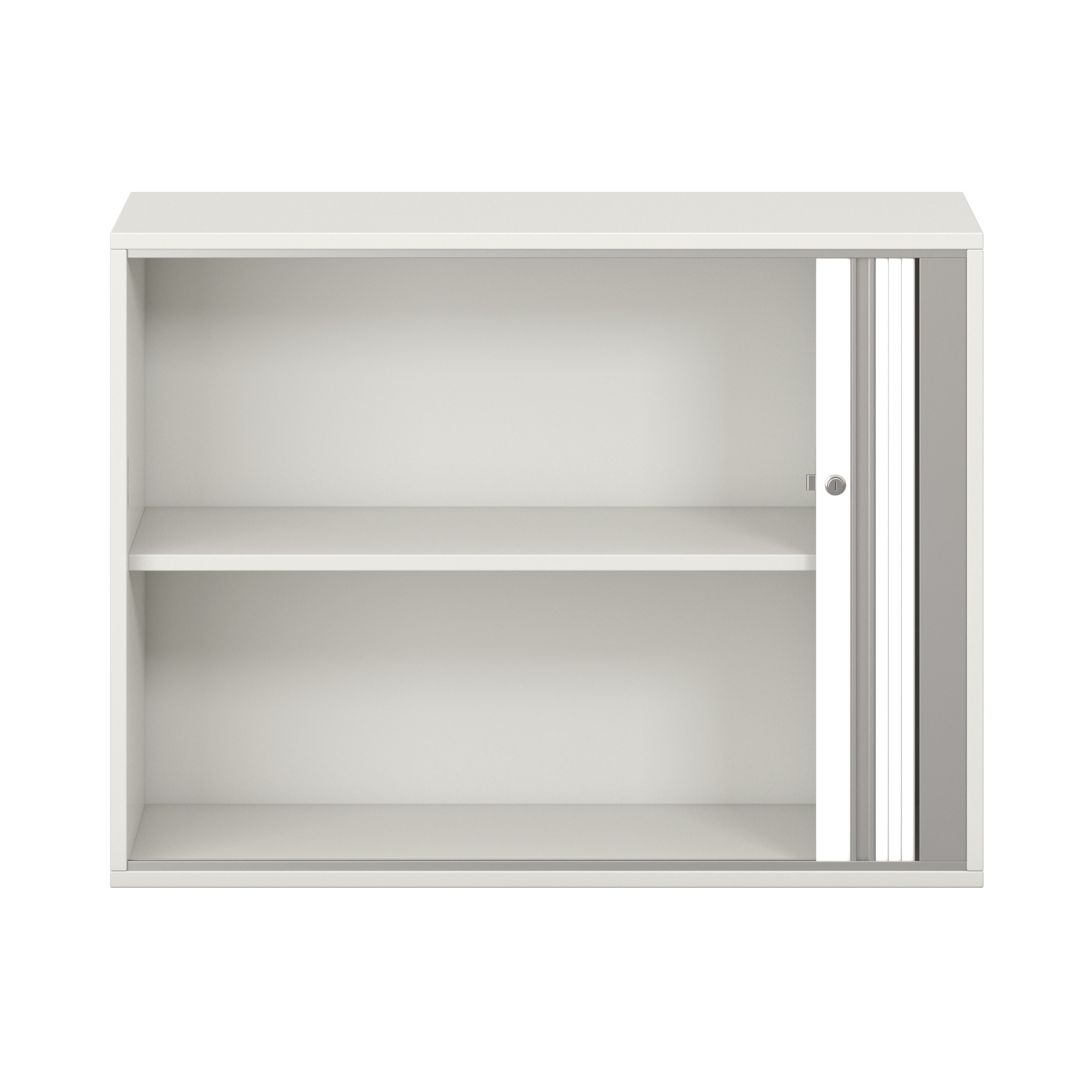 1 legplank. Afsluitbare horizontale rolluik met grepenlijst. Voor 10 ordnermappen met een maximale breedte van 8 cm.