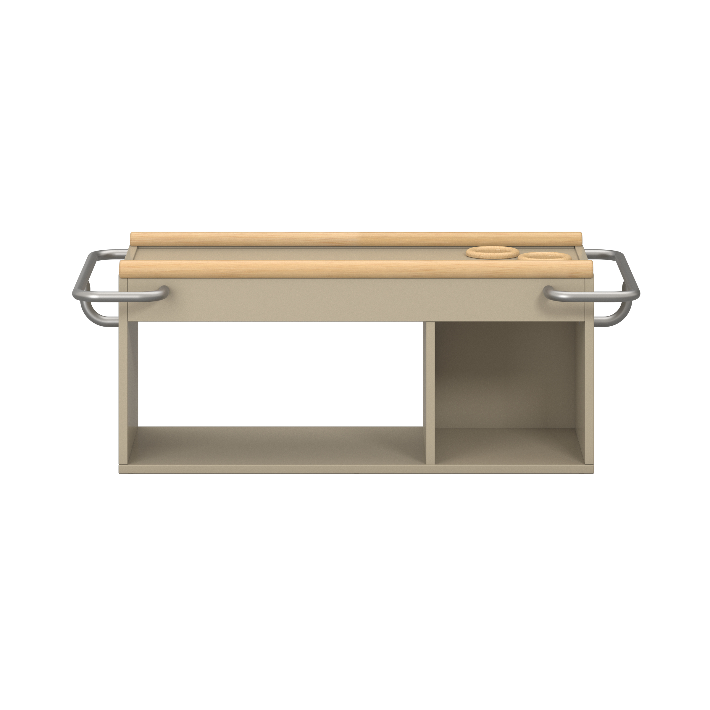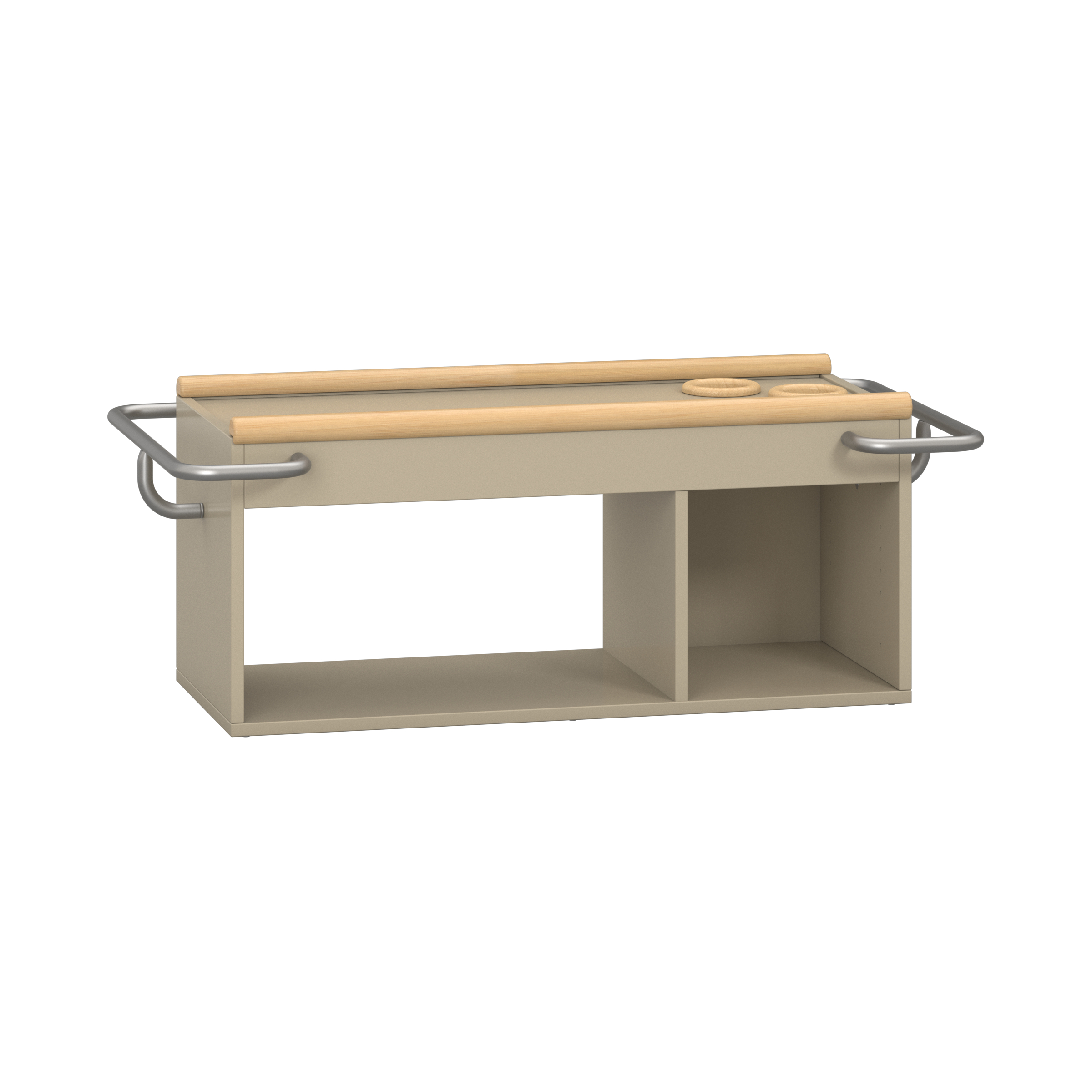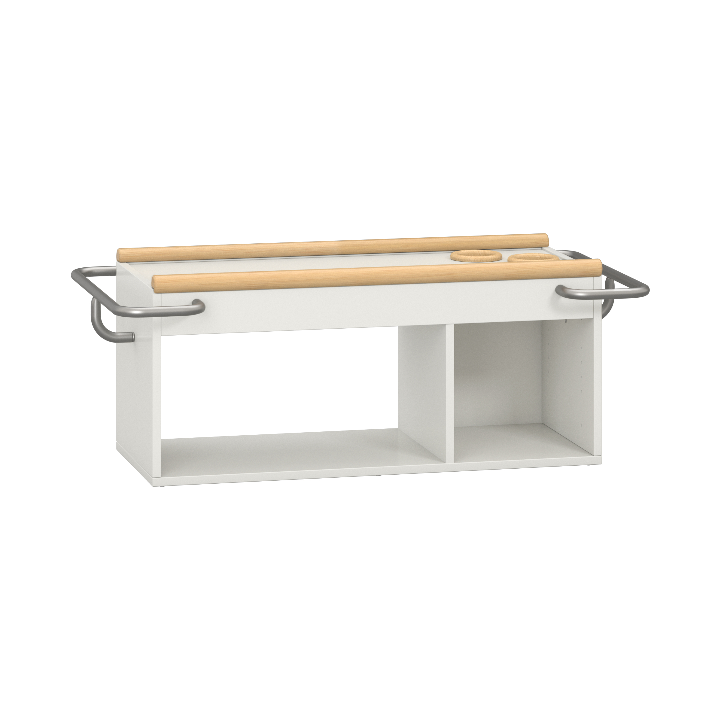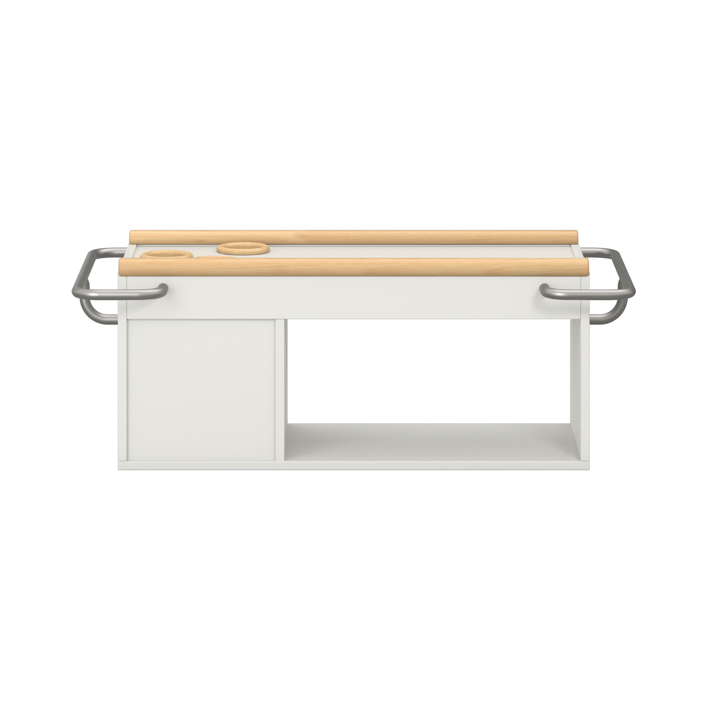 Vasthouden, optrekken, een speeltje door een van de drie openingen gooien, kijken waar het is geland en erdoorheen kruipen: deze open kast nodigt de kleintjes uit voor een stimulerende ontdekkingsreis. De kast is afgestemd op de behoeften van de allerkleinsten die net de wereld ontdekken. Met zijn massief beukenhouten latten en de loopreling is de Pureo kast een veilige speelplek die steun biedt tijdens het ontdekken zonder scherpe hoeken en randen.