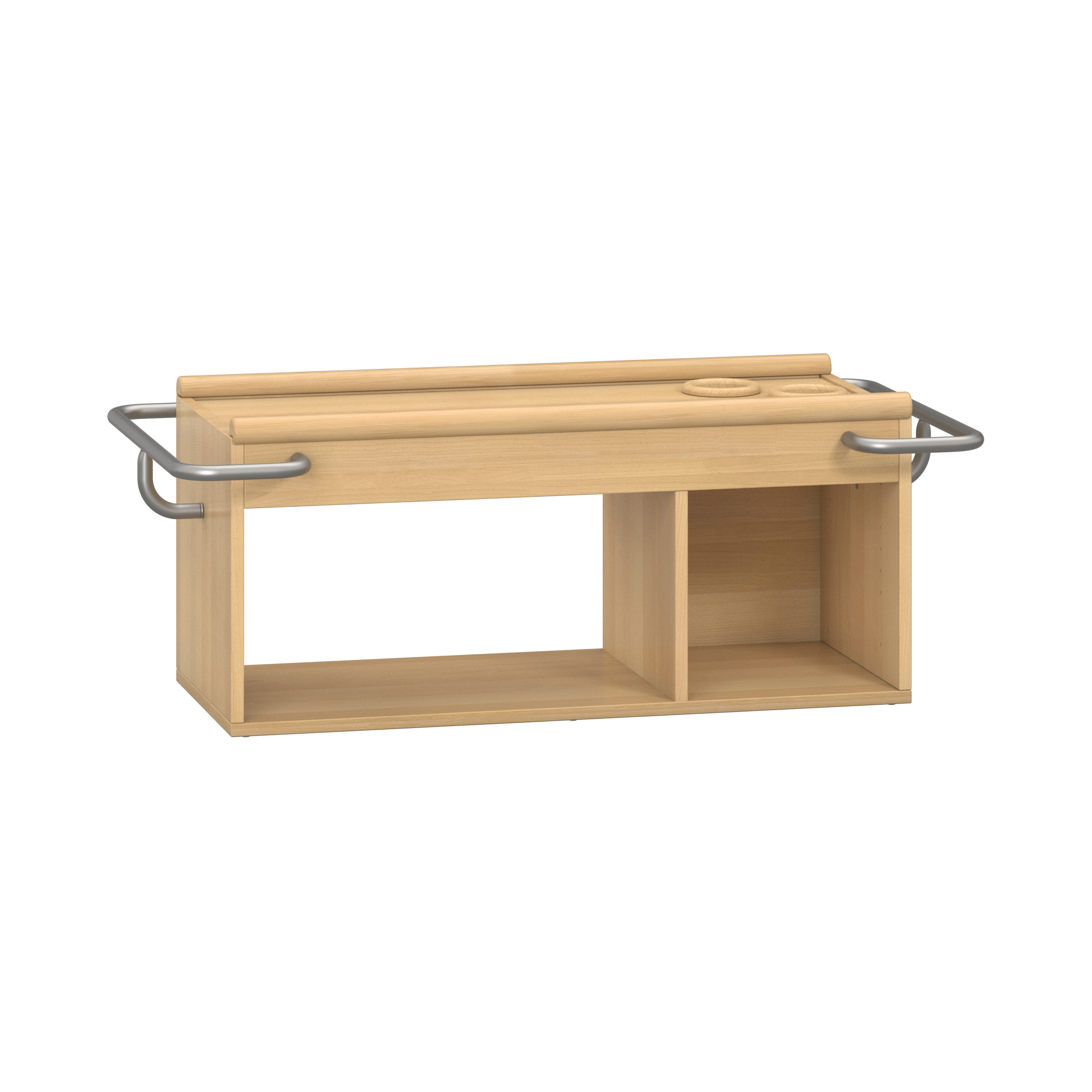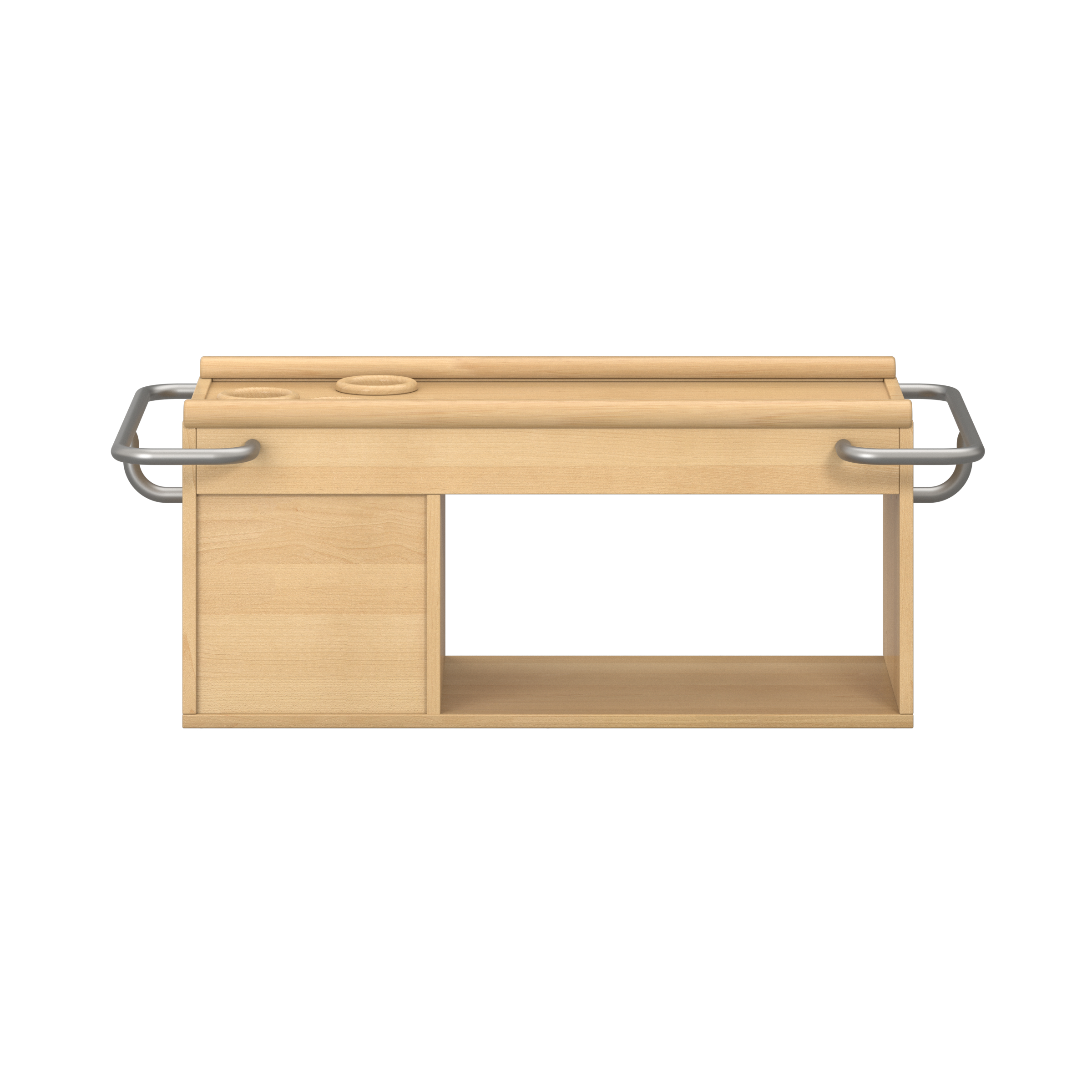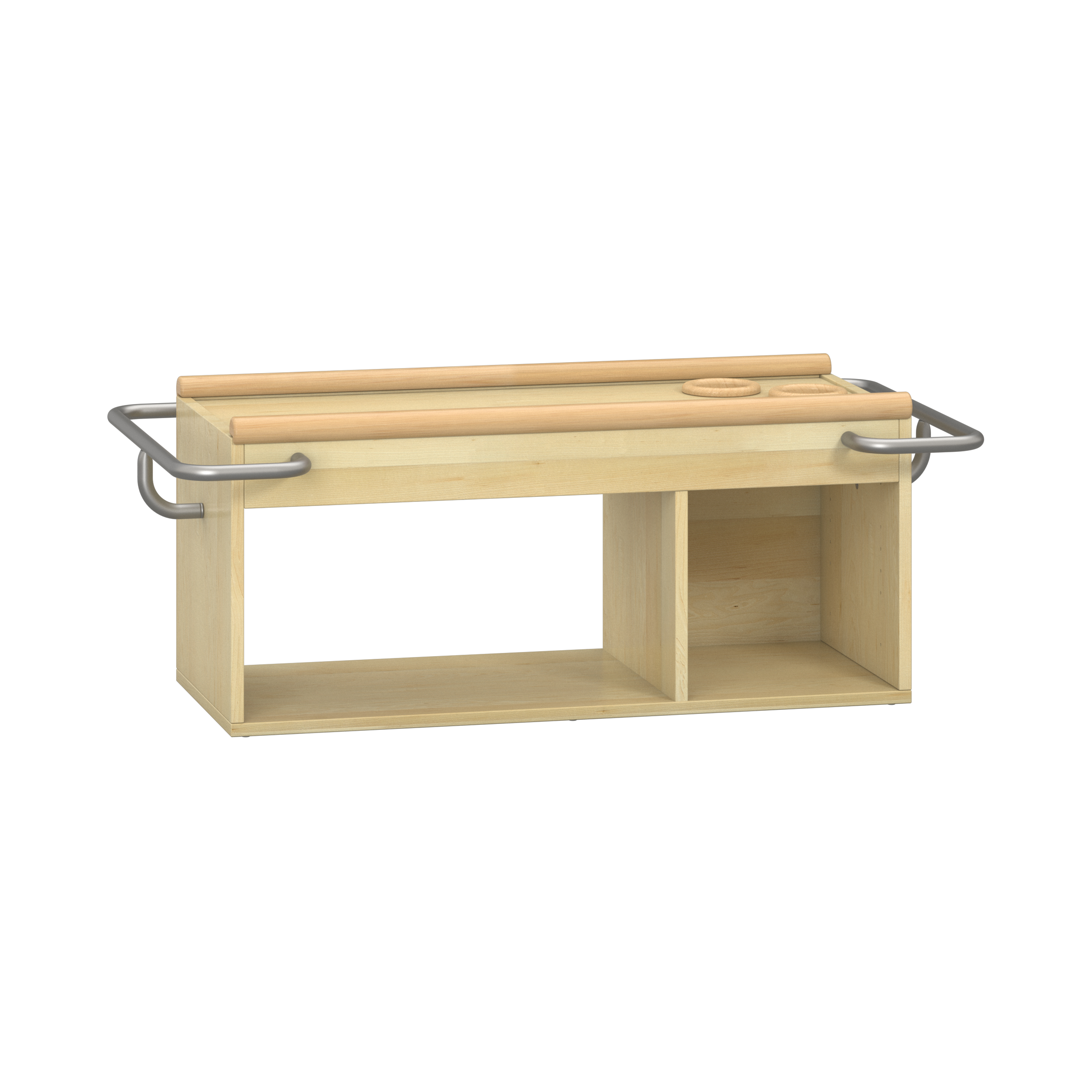 Vasthouden, optrekken, een speeltje door een van de drie openingen gooien, kijken waar het is geland en erdoorheen kruipen: deze open kast nodigt de kleintjes uit voor een stimulerende ontdekkingsreis. De kast is afgestemd op de behoeften van de allerkleinsten die net de wereld ontdekken. Met zijn massief beukenhouten latten en de loopreling is de Pureo kast een veilige speelplek die steun biedt tijdens het ontdekken zonder scherpe hoeken en randen.