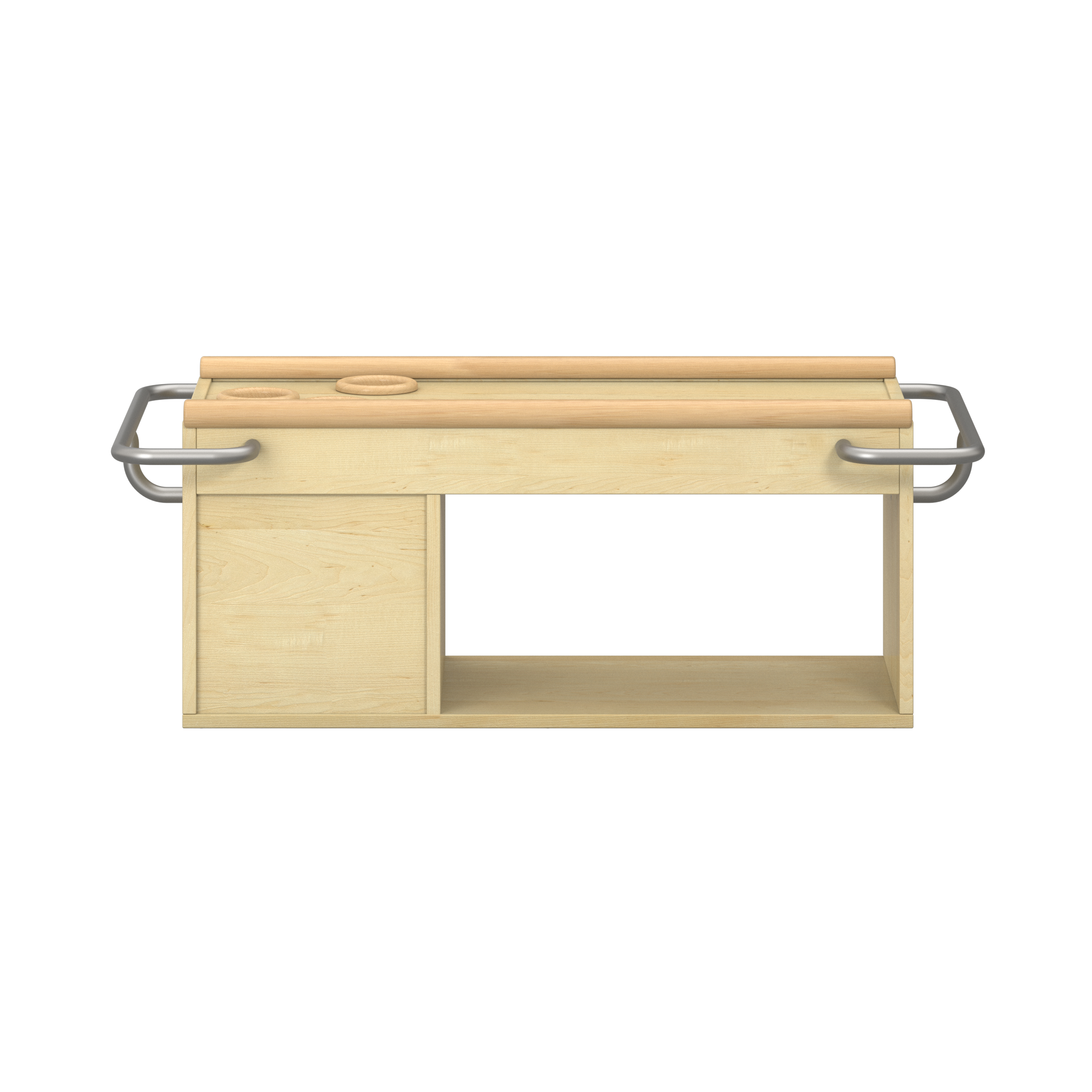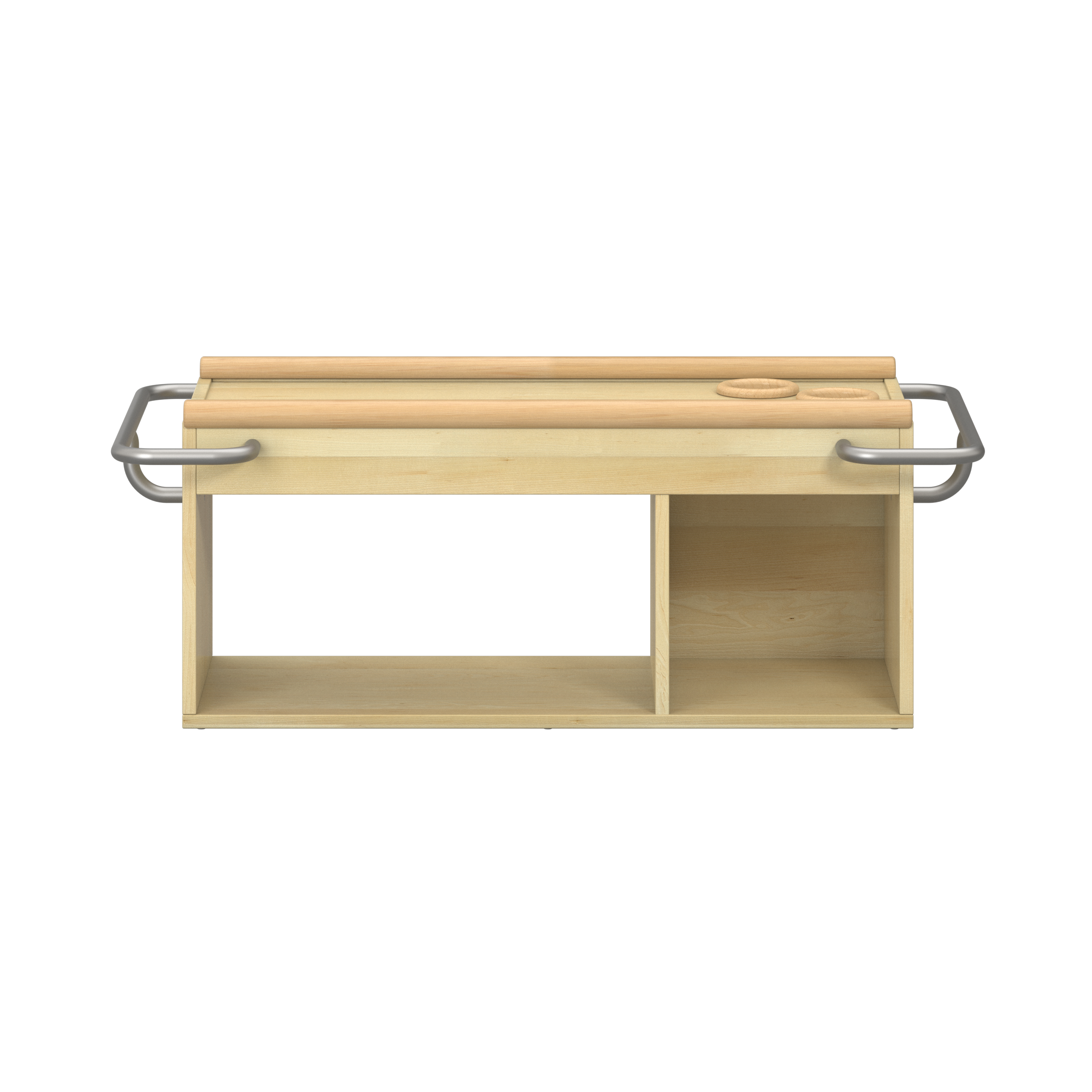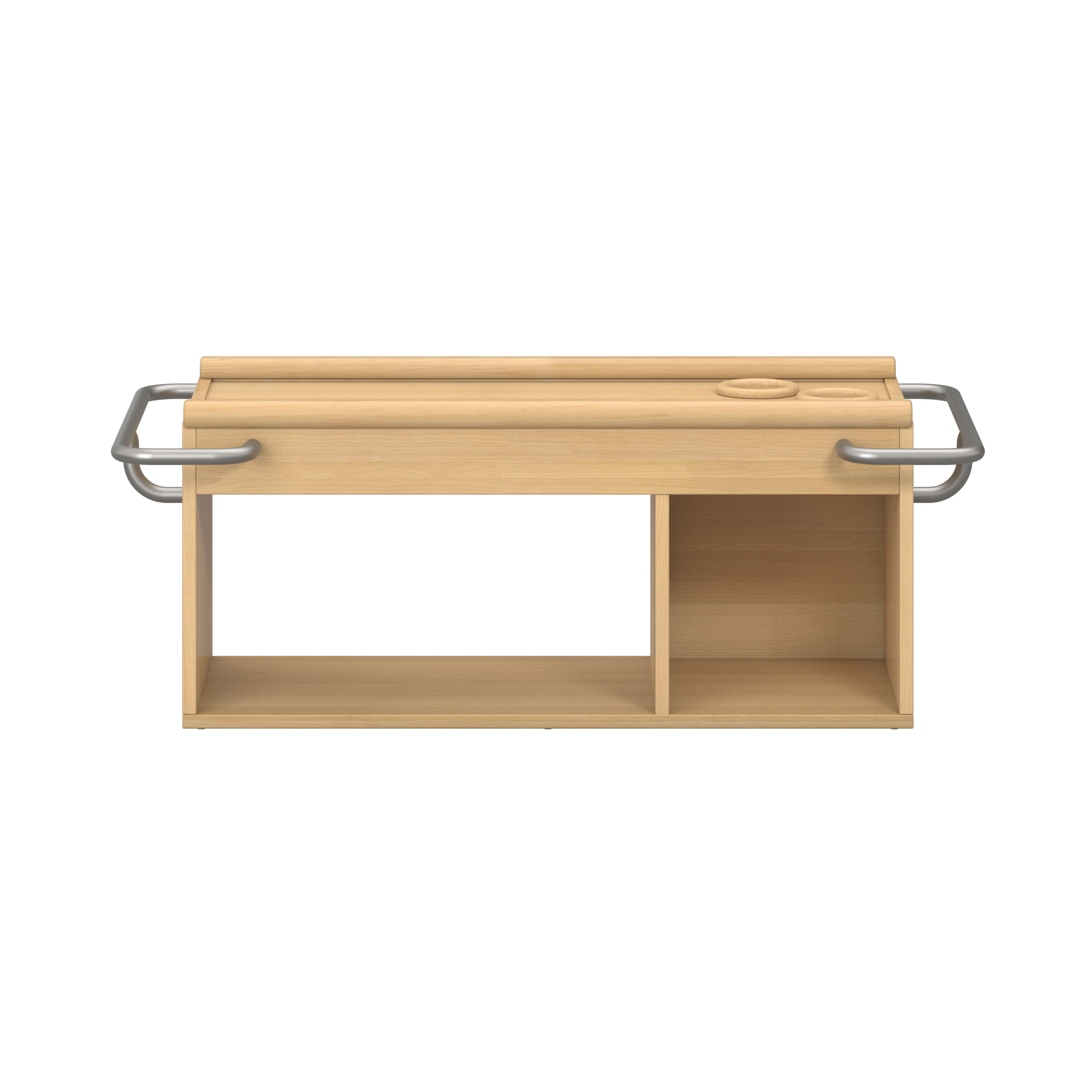 Vasthouden, optrekken, een speeltje door een van de drie openingen gooien, kijken waar het is geland en erdoorheen kruipen: deze open kast nodigt de kleintjes uit voor een stimulerende ontdekkingsreis. De kast is afgestemd op de behoeften van de allerkleinsten die net de wereld ontdekken. Met zijn massief beukenhouten latten en de loopreling is de Pureo kast een veilige speelplek die steun biedt tijdens het ontdekken zonder scherpe hoeken en randen.