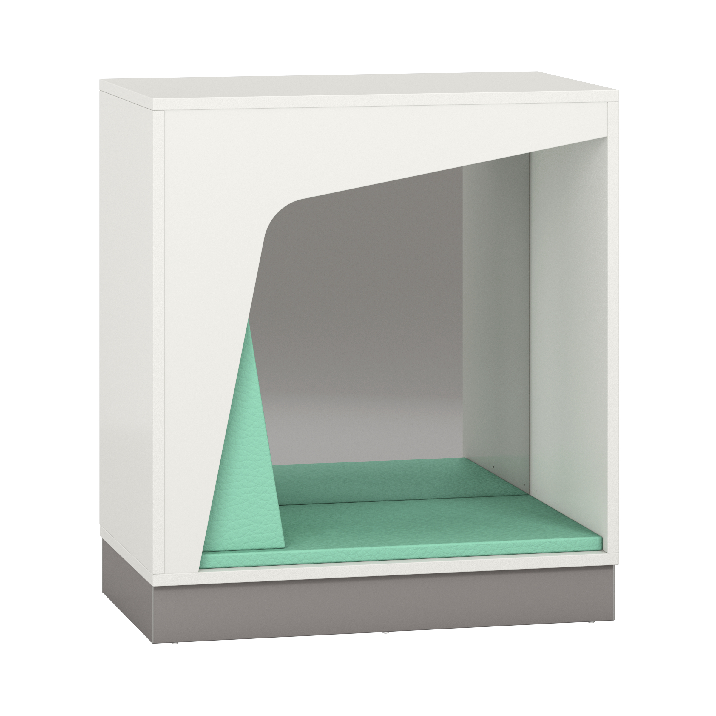 Achterwand met veiligheidsspiegel voor bijzondere ervaringen tijdens het spelen en ontdekken. Afmetingen: B 100 x H 100 x D 60 cm.