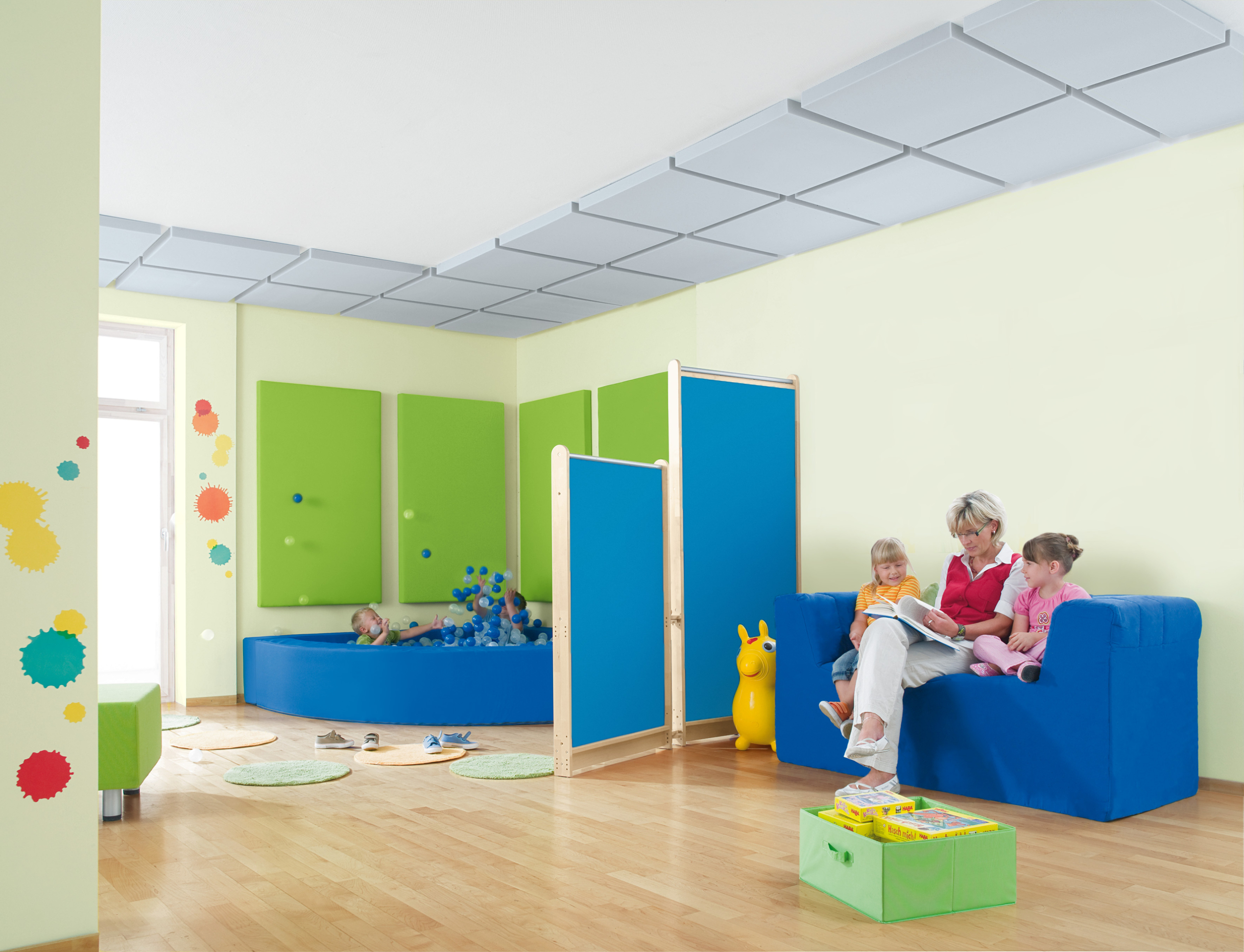 Dubbelzijdig met geluiddempend vilt. Kan daarom ook uitstekend worden gebruikt als prikbord. Door het dubbelzijdige absorptieoppervlak zijn de elementen 1,6 tot 1,7 keer efficiƫnter dan de gelijmde wand- en plafondelementen.