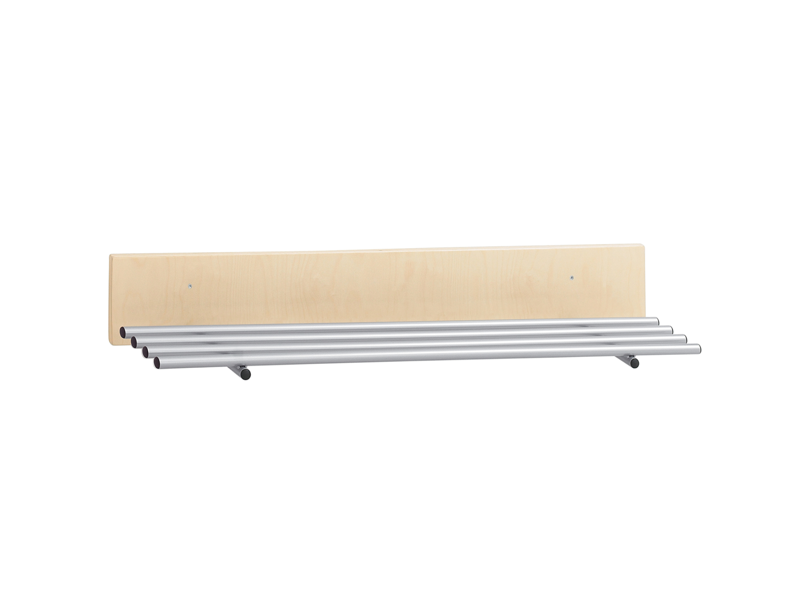 Opbergrek met 4 stangen. Materiaal: poedergecoat staal (RAL 9006) – ongevoelig voor vocht.