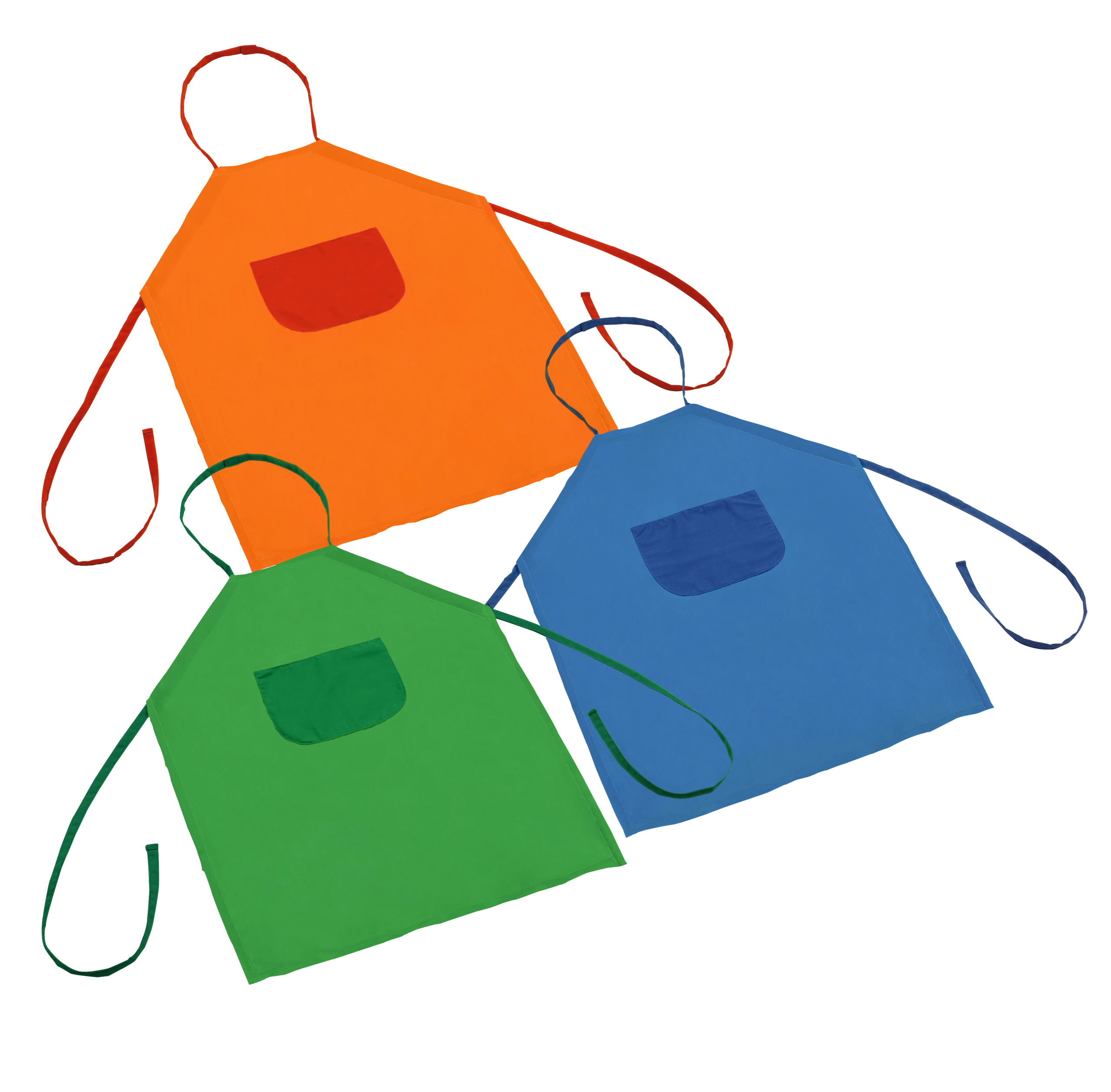 De lengte kan worden aangepast via de doorlopende draag-/bindriemen. Zo passen ze kinderen van 3 tot ongeveer 10 jaar. Klittenband in de nekzone. Materiaal: polyamide, polyester; voorzichtig wasbaar op 30 °C. Afmetingen: B 53 x L 65 cm. Kleuren: rood, groen, blauw.