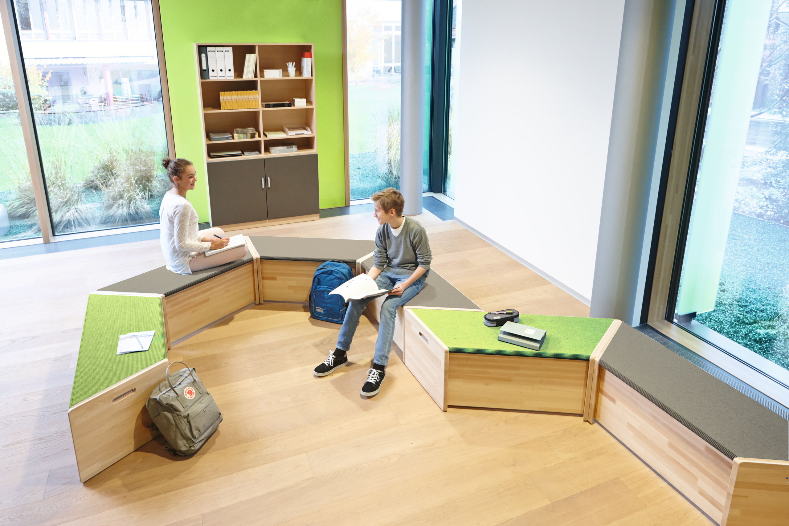 Met Tretford tapijt oppervlak. Materiaal: massief beukenhout.