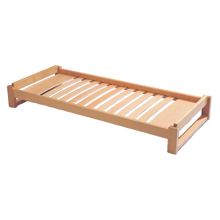 Voor jonge kinderen is de middagdut een belangrijk onderdeel van de dagelijkse routine. Het is vooral belangrijk voor hen om comfortabel te kunnen rusten, zodat ze met vernieuwde energie klaar zijn voor de rest van de dag. Hiervoor zijn onze stapelbedden perfect geschikt. Het massief houten frame is zowel geduwd als gelijmd, wat zorgt voor een zeer stevige constructie. De extra gelijmde lattenbodems zorgen voor een aangenaam liggevoel. Hierdoor wordt de middagdut echt ontspannend. Deze bedden zijn eenvoudig en veilig stapelbaar. Ze kunnen snel en gemakkelijk worden opgeborgen, waardoor ze ruimtebesparend zijn. Een voordeel van de stapelbedden is dat het beddengoed er gewoon op kan blijven liggen na de middagrust. Dankzij de poten is de ruimte tussen de bedden groot genoeg voor voldoende luchtcirculatie. Zo is het bed al netjes opgemaakt voor het volgende gebruik. Het bed wordt zonder matras geleverd, maar u kunt bij ons direct een geschikte matras meebestellen.
