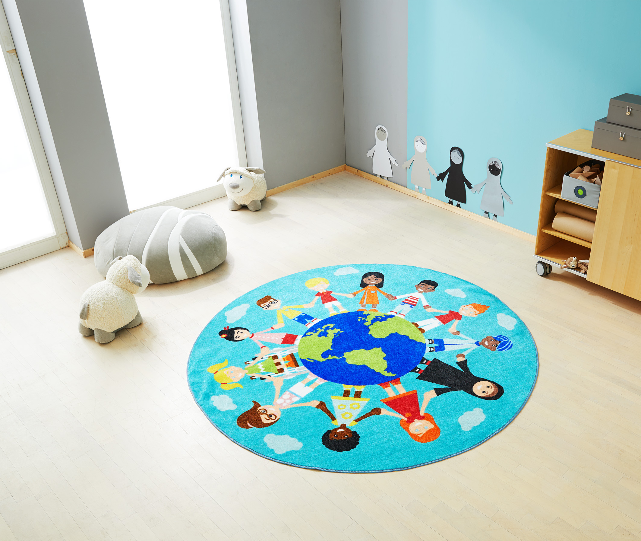 Het Tapijt Kinderen van de Wereld biedt veel gespreksstof: over andere landen, naties, talen, religies, gebruiken en tradities.