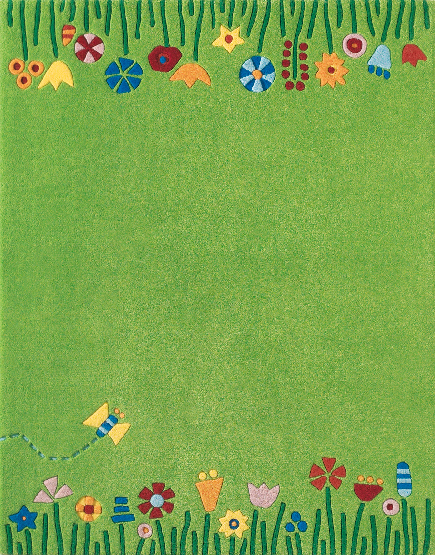 Wie loopt er niet graag over een bloeiend lentegrasveld? Kijk! Zelfs een vlinder vliegt voorbij. Dit tapijt is niet geschikt voor kinderen jonger dan 3 jaar.