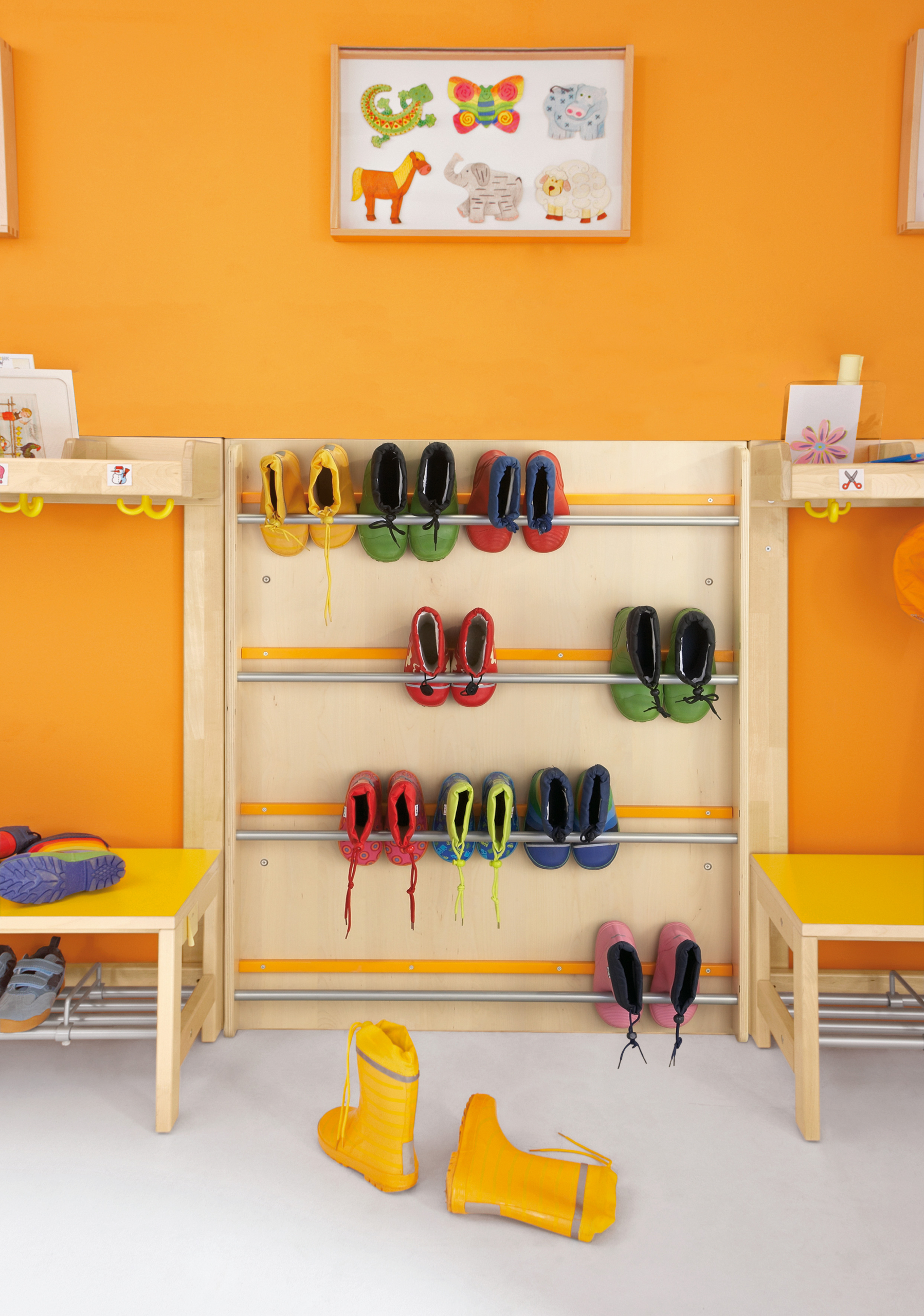 Eenvoudig, simpel en toch geniaal! Hier kunt u laarzen ruimtebesparend opstellen. De achterwand is handig bedekt met Duropal, zodat vuil en vocht geen schade kunnen aanrichten. Een waterbestendige rand beschermt enerzijds de muur en zorgt er anderzijds voor dat de laarzen rondom kunnen drogen.