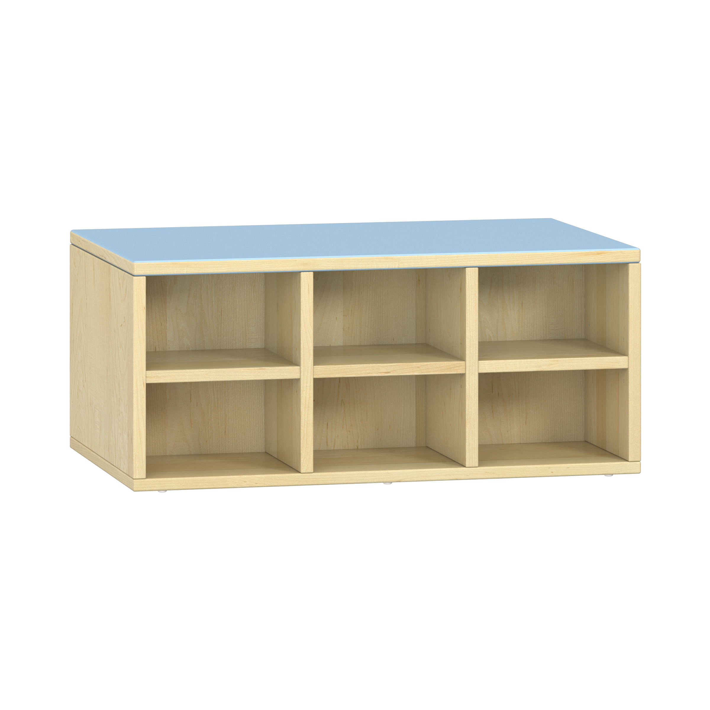 Met het zit- en aankleedplatform op kindvriendelijke zithoogte kunnen schoenen netjes worden opgeborgen. Ze zijn uitgerust met totaal 12 vakken, die van twee zijden toegankelijk zijn. De platforms kunnen tegen de muur of vrij in de ruimte staan, zodat eventuele drukte in de garderobe wordt verlicht.