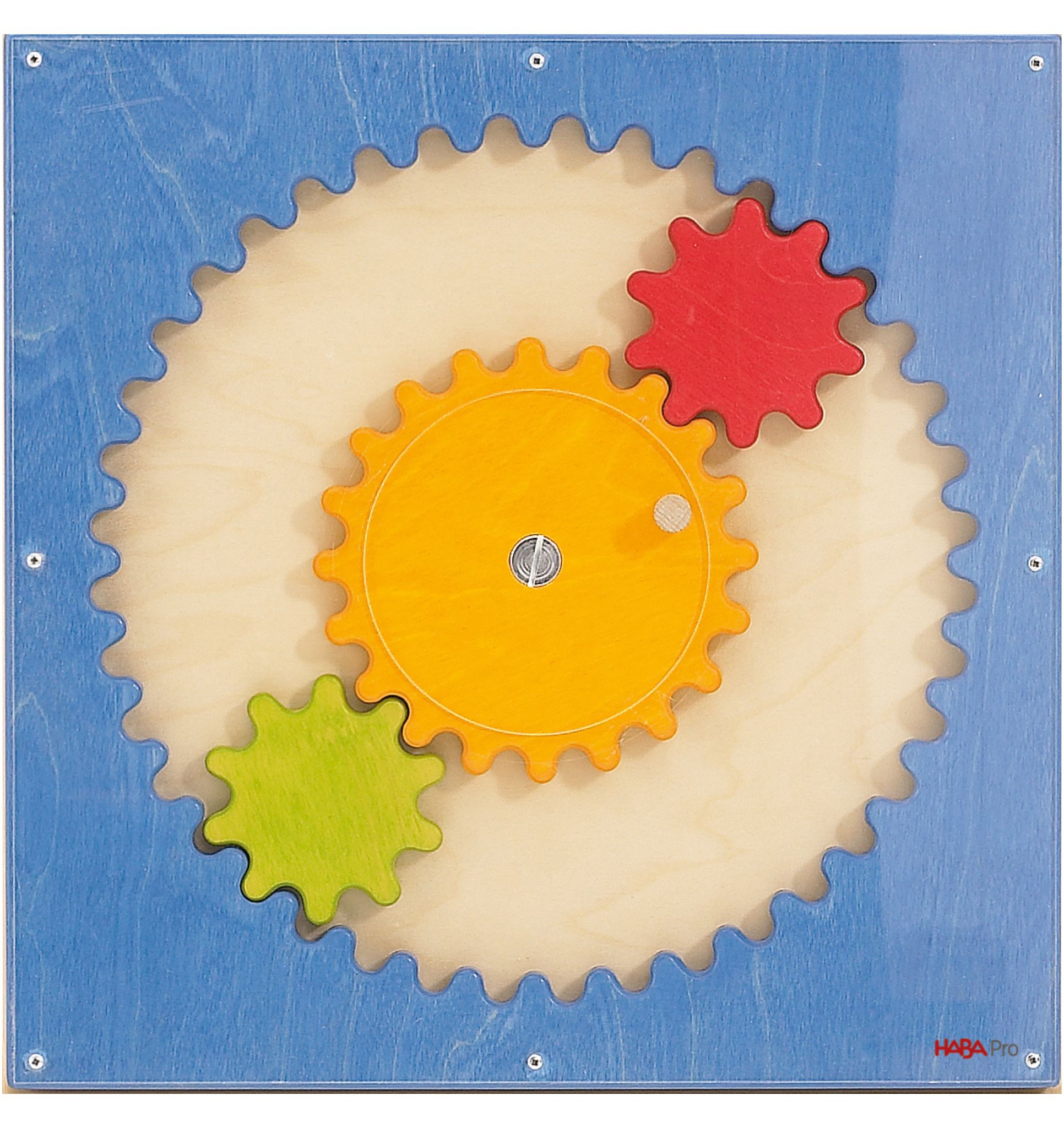 Als het grote tandwiel draait, bewegen de twee kleine tandwielen ook verder: tand voor tand.